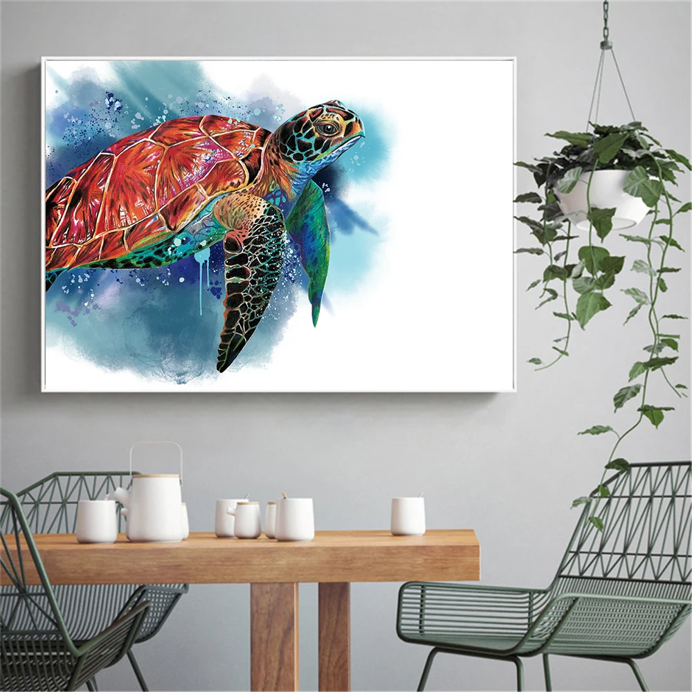 Морская картина с морской черепахой Художественная печать океан пла...