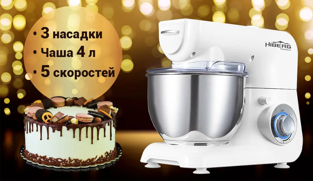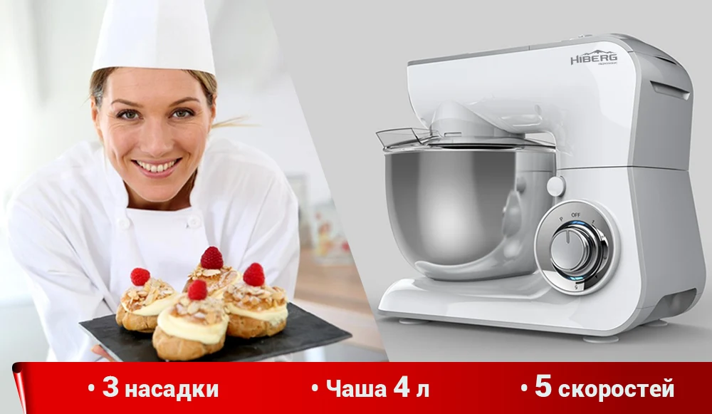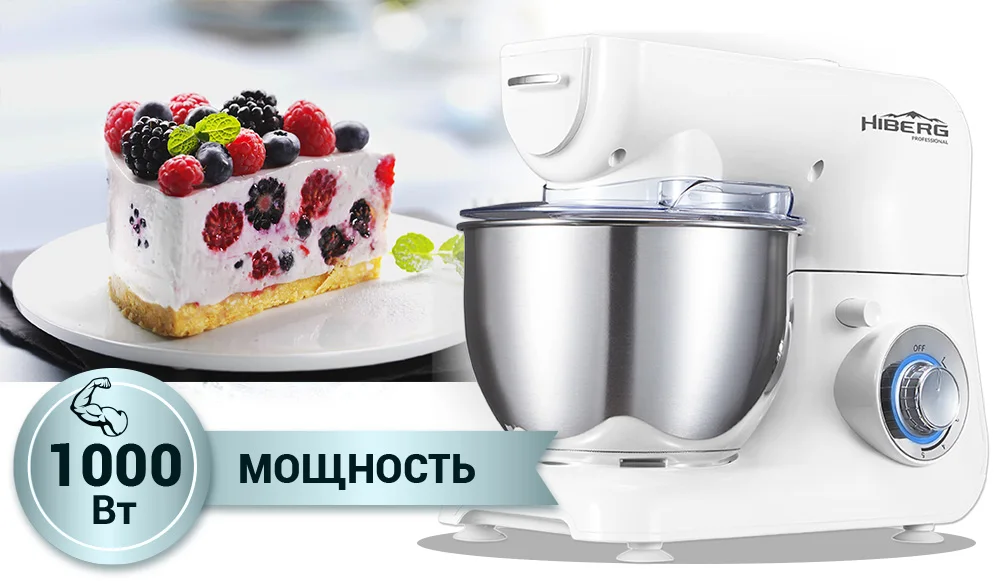 Планетарный миксер HIBERG MP 1040 W, Миксер с подставкой, Кухонный комбайн, Миксер с чашей