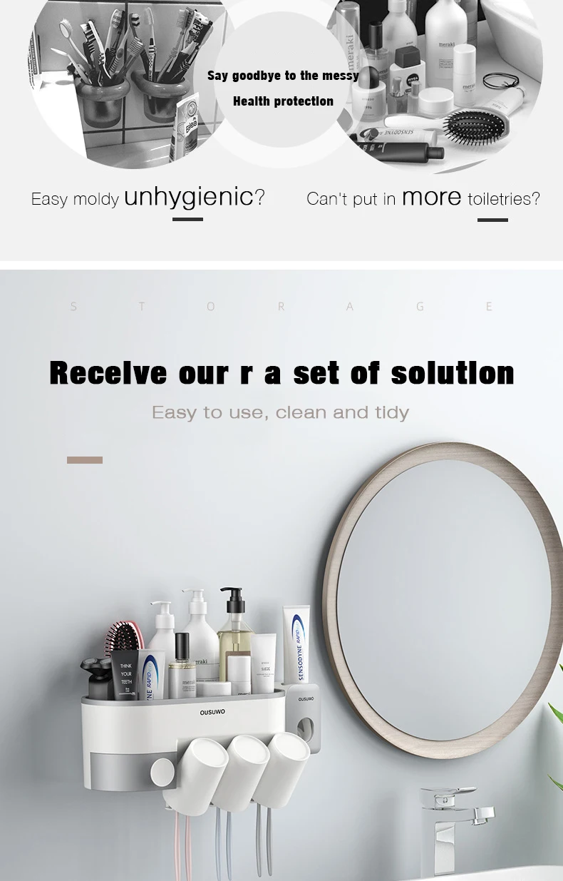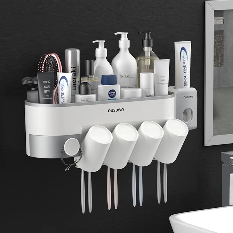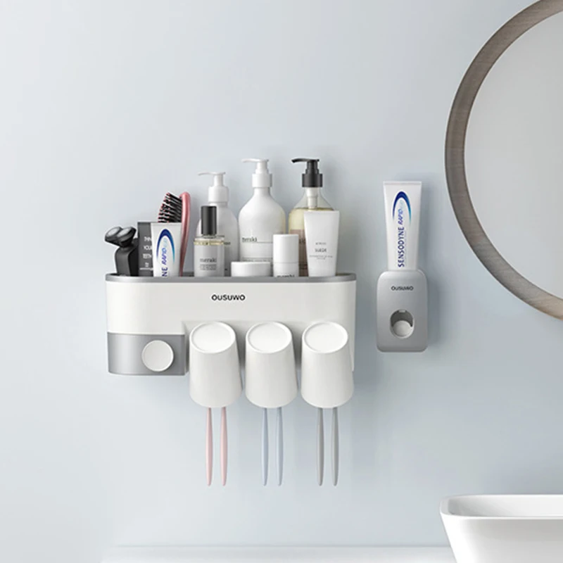 Настенное крепление держатель для зубной пасты и для зубной щетки, автоматический диспенсер, наборы аксессуаров для ванной комнаты, органайзер для хранения, стойка, коробка