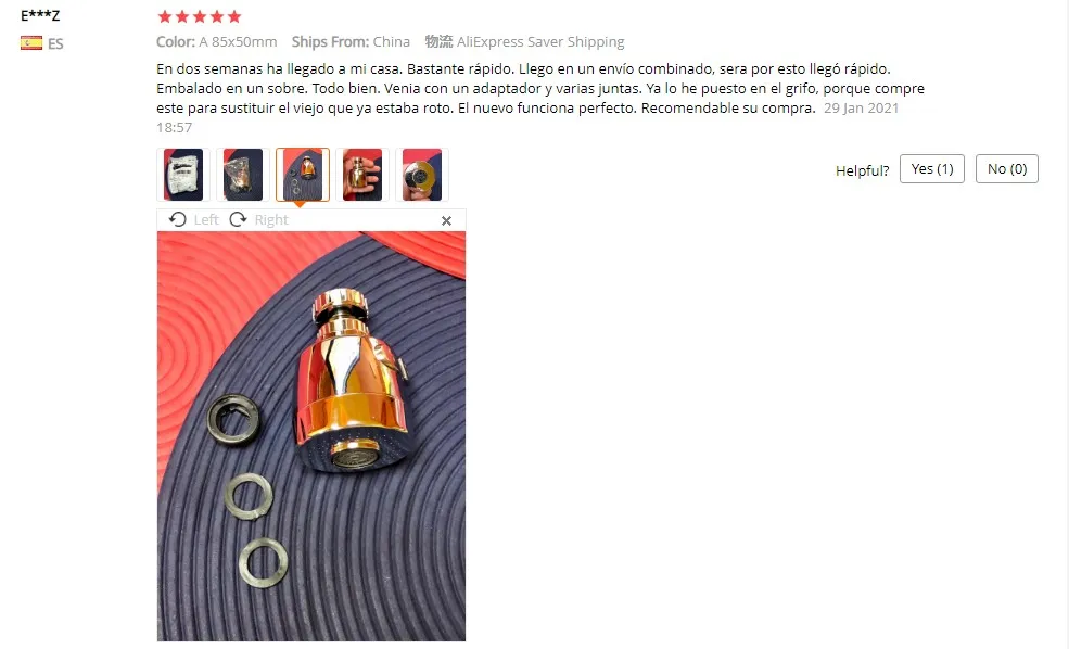 Через две недели он прибыл ко мне домой. Довольно быстро. Я прибываю в комбинированной доставке, sera для этого БЫСТРО прибыл. Упаковано в конверт. Все в порядке. Все в порядке. Поставляется с адаптером и несколькими соединениями. Я уже надел его на кран, потому что купил этот, чтобы заменить старый, который был уже сломан. Новая модель отлично работает. Рекомендуем вам купить.