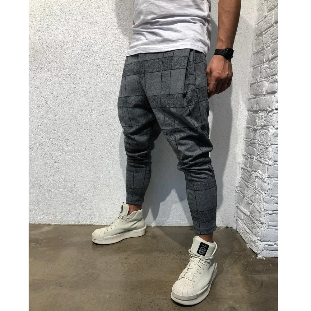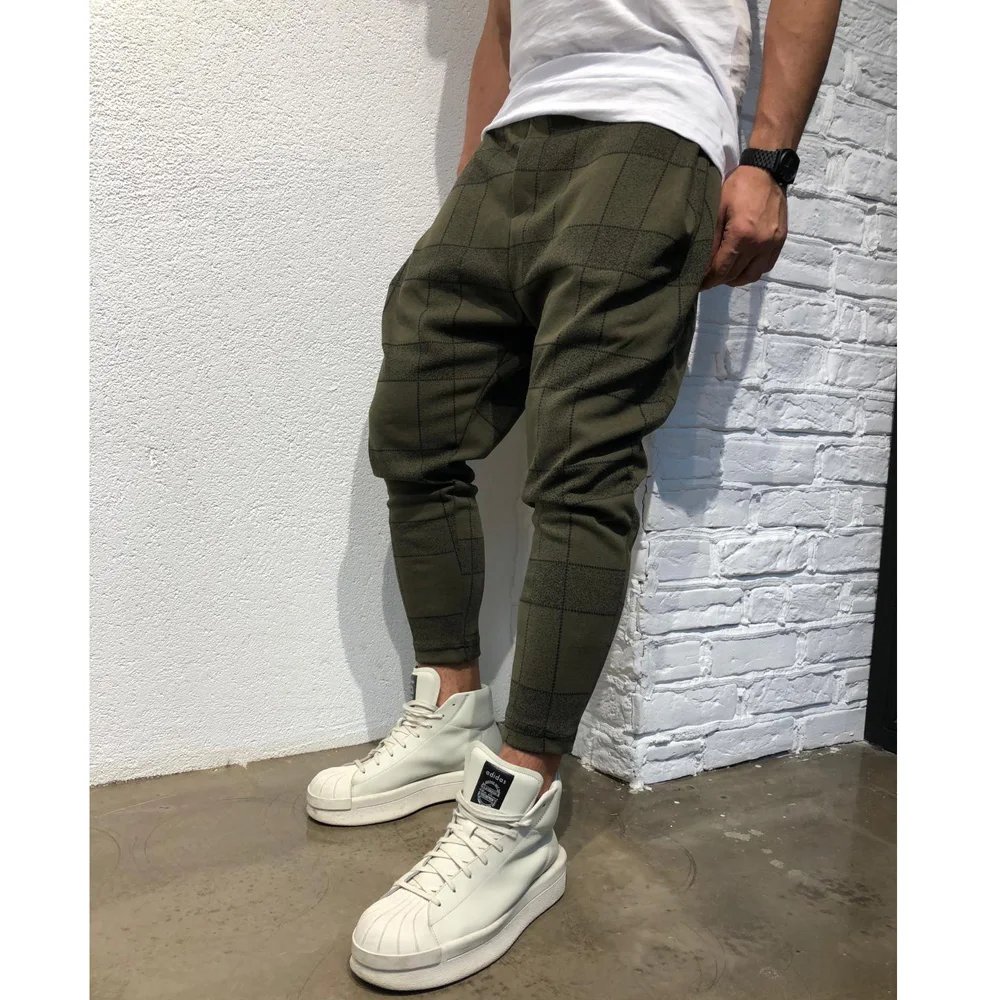 Мужские модные повседневные брюки контрастный цвет клетчатый спортивный костюм брюки-шаровары брюки для пробежек черный серый красный армейский зеленый