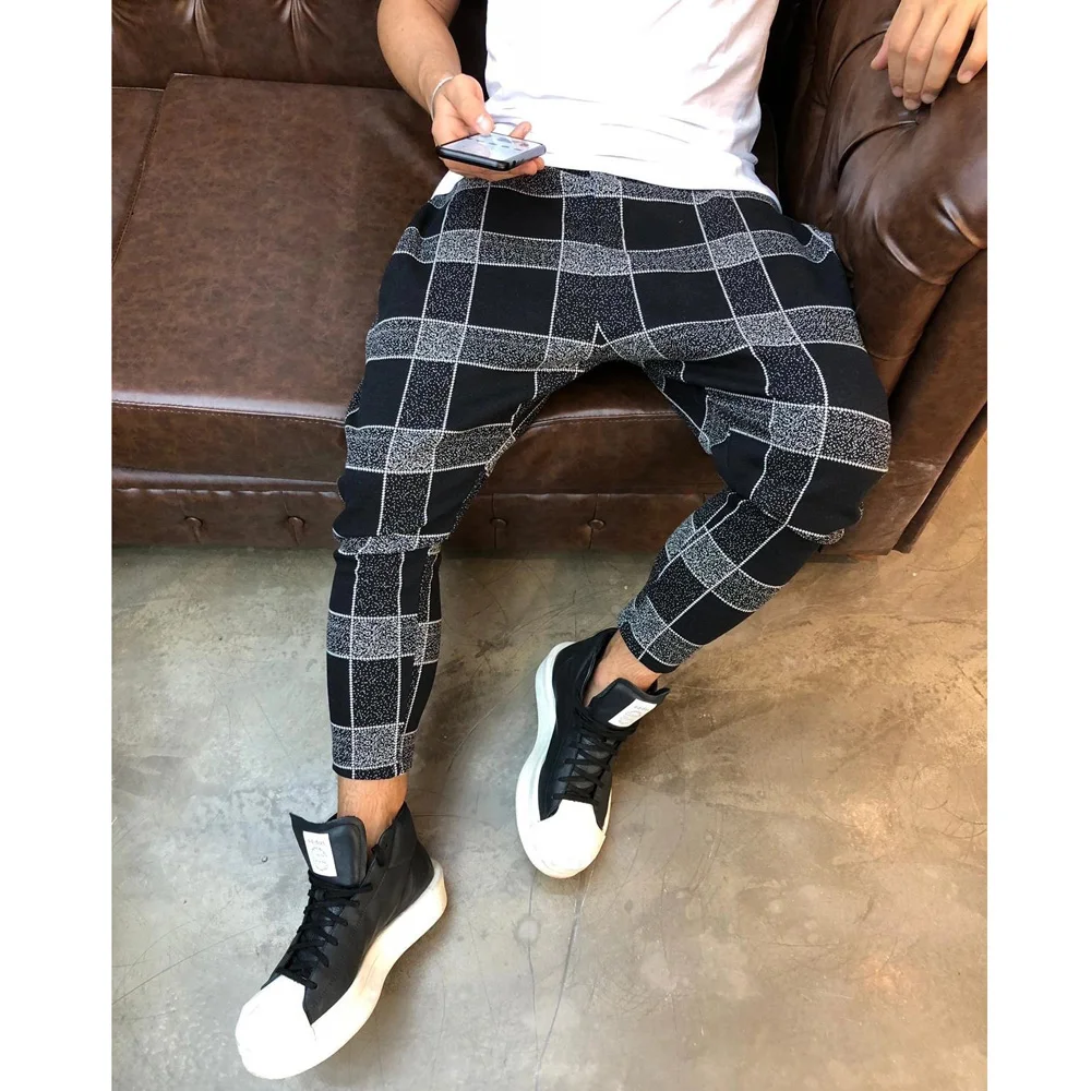 Мужские повседневные брюки Hirigin, облегающие длинные брюки в клет...