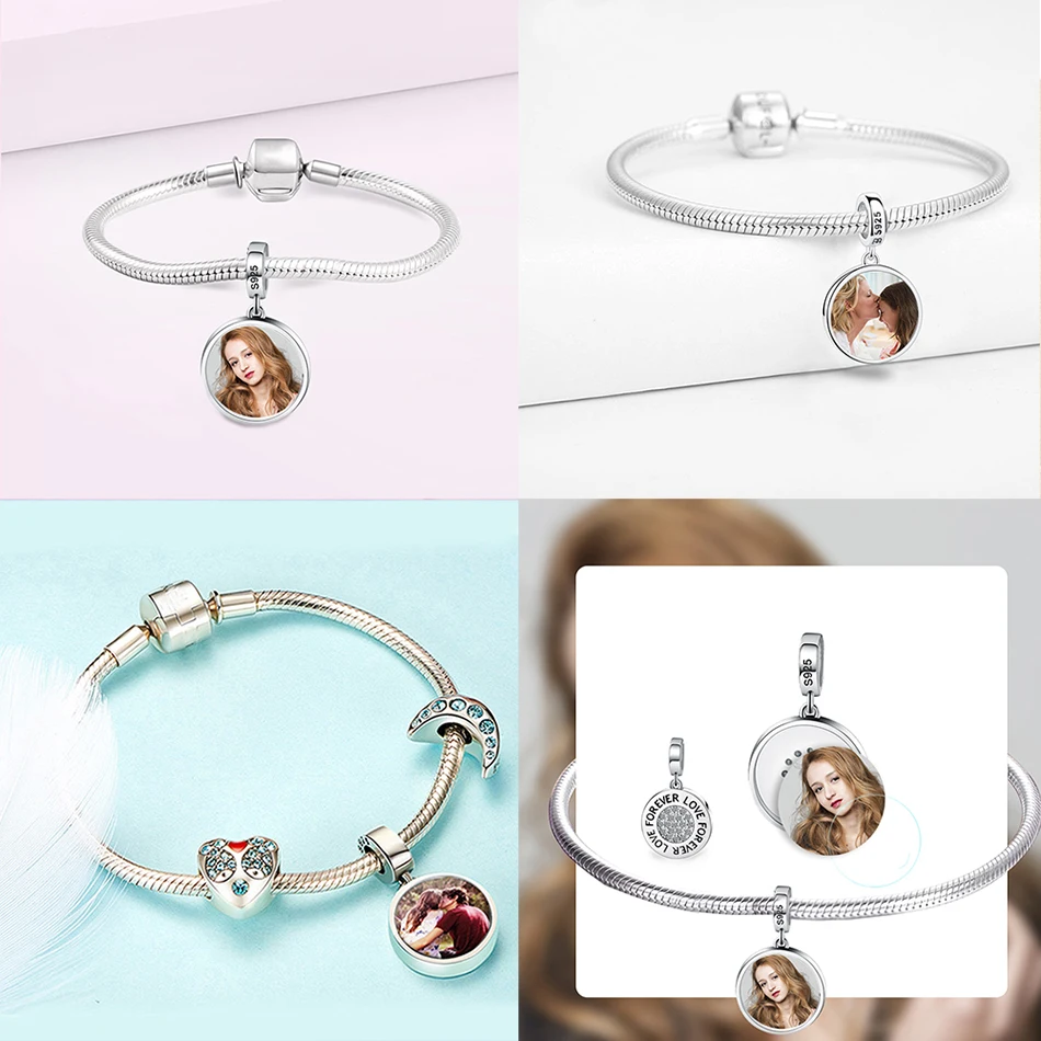 Колько Forever Love персонализированные пользовательские фото круглый шарма 925 пробы серебро циркон бусины подходят оригинальный браслет ювелирных изделий