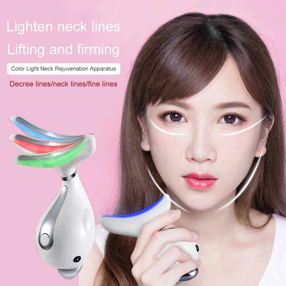 3 цвета светодиодный Фотон терапия шеи и инструмент лифтинга лица IPL вибрации кожи затянуть уменьшить двойной подбородок против морщин Удаление Устройства