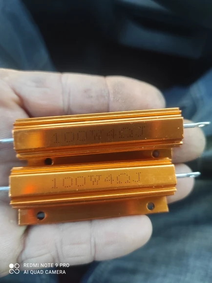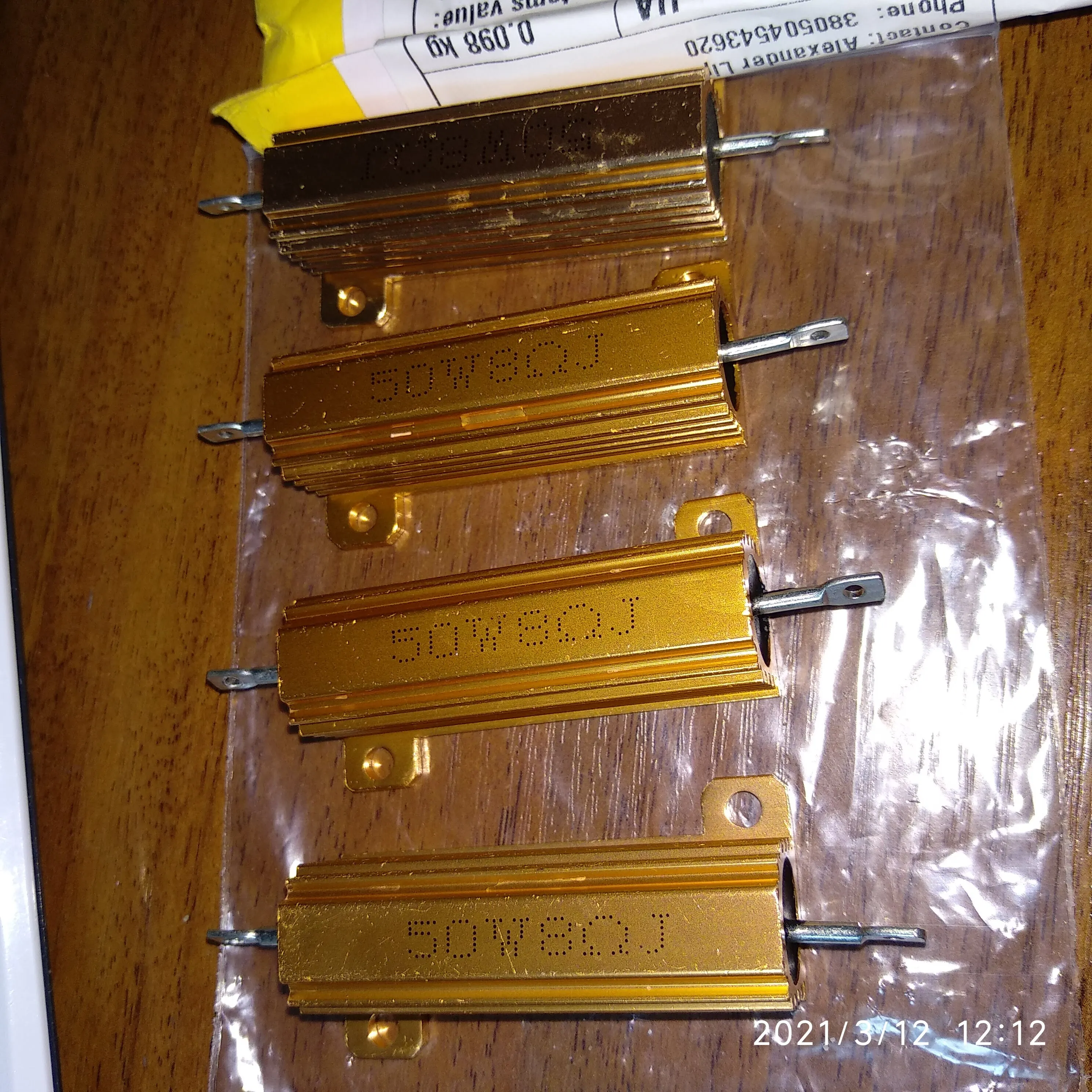Доствка 12 дней в МО! Круто! Трек отслеживался. Брал 4 шт по 100 Ом. Померил, все в разбросе 94...96 Ом. Брал для обманок в фары для LED ламп ближнего и дальнего света. До этого взял тоже 4 штуки по 8 Ом, но они раскаляются до 180 градусов. Решил попробовать на 100 Ом, вдруг удастся обмануть электронику, т.к. даже с голыми LED лампами ошибка не всегда выскакивает. Эти на 100 Ом за полчаса нагрелись до 40 градусов, т.е. можно прямо в фару спрятать