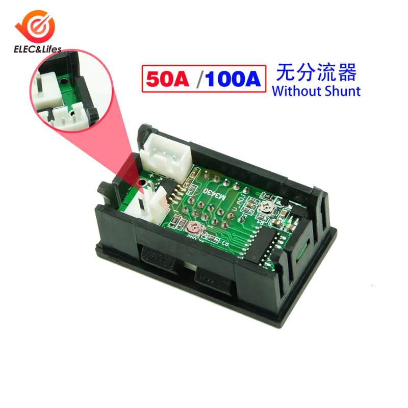 Цифровой автомобильный вольтметр, амперметр, постоянный ток 100 в, 10 А, 50 А, а, светодиодный дисплей, панель, амперметр, измеритель напряжения, тока, тестер, детектор