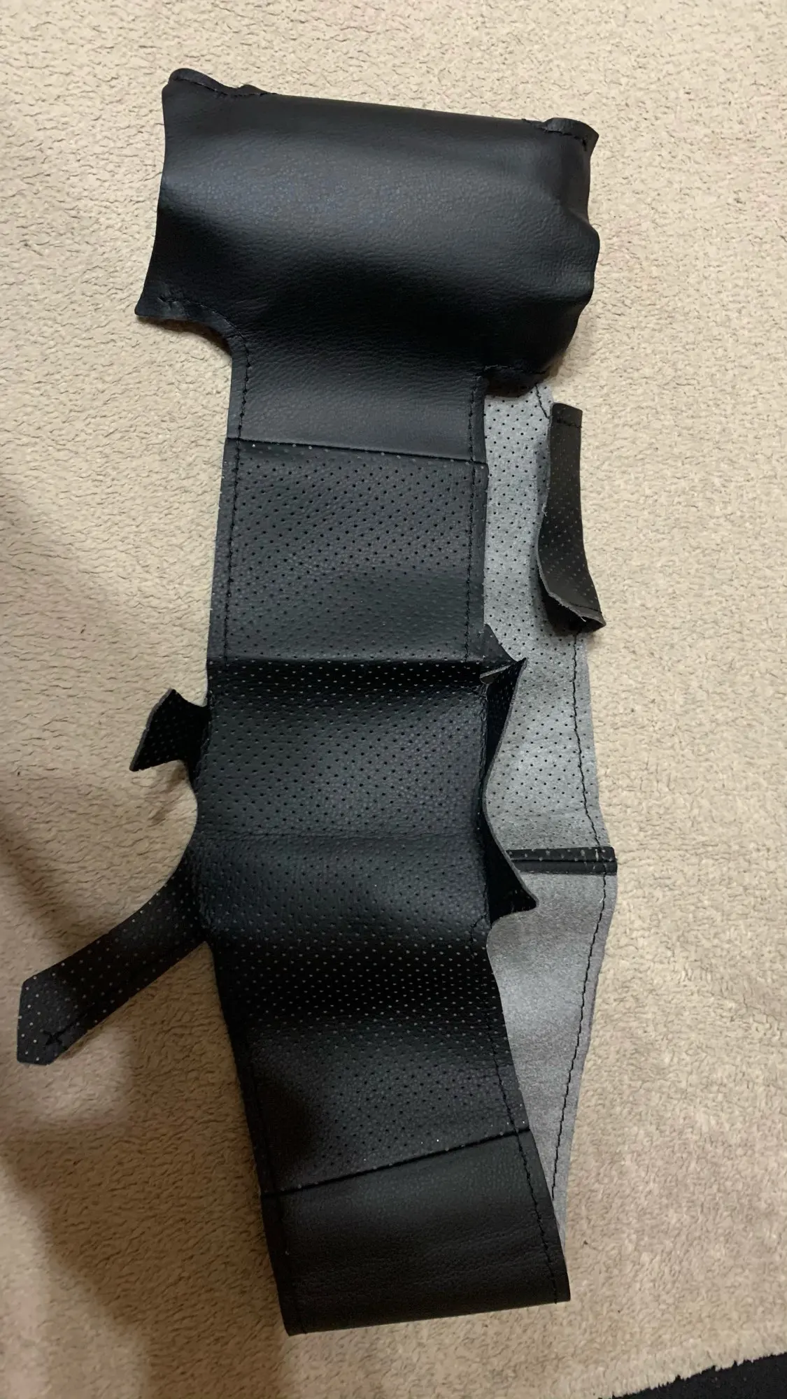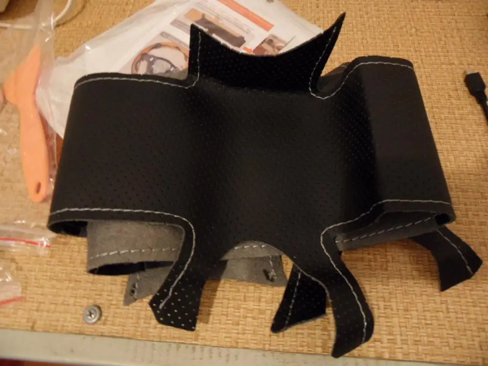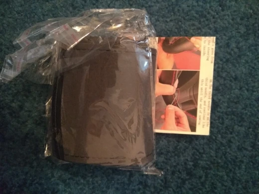 Посылку получил вовремя. Снял с руля старую коженную оплетку, одел новую из искусственной кожи. Села хорошо, по размеру совпадает. На будущее оплетку надо изнутри всю приклеивать, т. к. она по диаметру руля чуть больше, мне пришлось сшивать в нахлест. Получилось на 4+.