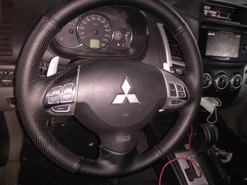 Подошёл почти идеально к mitsubishi outlander xl, края заходящие под накладки пластиковые, можно было бы сделать чутка длиннее. Шила 4 часа по итогу. Смотрится аккуратно. Старую оплётку не снимала