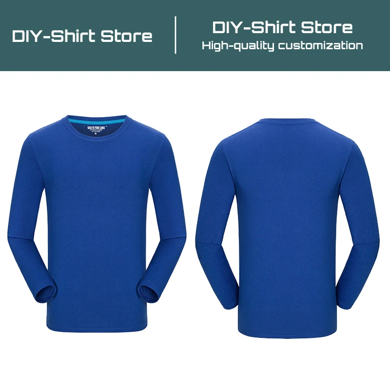 Хлопковая футболка с логотипом на заказ, Мужская футболка на весну и осень, Домашняя мужская однотонная Повседневная футболка с длинным рукавом и круглым вырезом, размеры США: XS-2XL