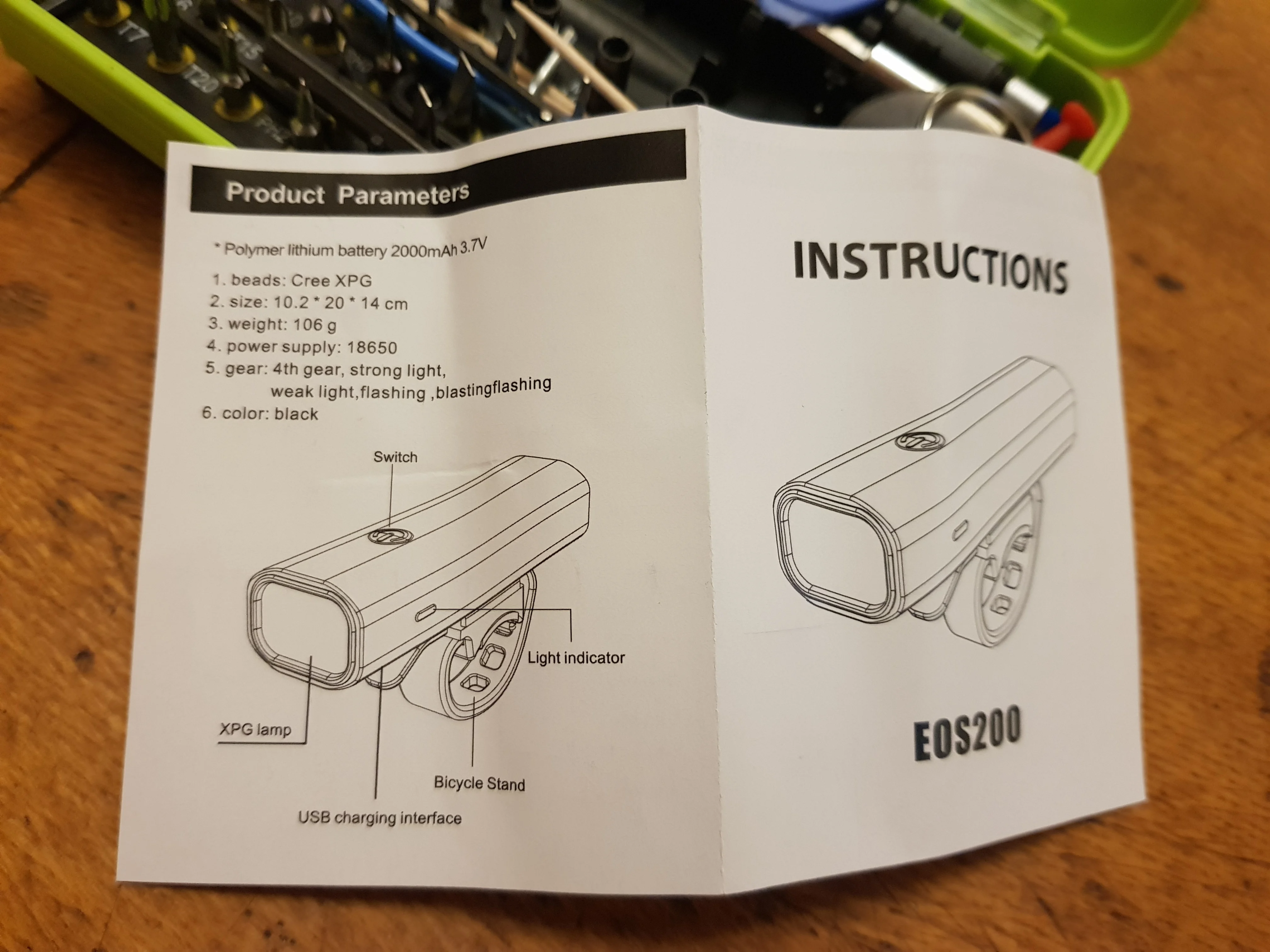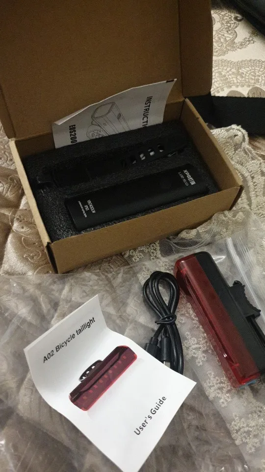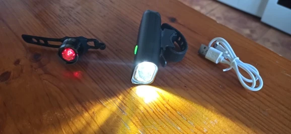 Выглядит хорошим качеством, все еще нужно проверить ночью, но это дает хорошее освещение и видя устойчивые якоря, поставляется передний свет, заряжаемый для использования и с вашим кабелем для зарядки, задний фонарь с питанием от батареи, так что вы можете использовать только упаковку.