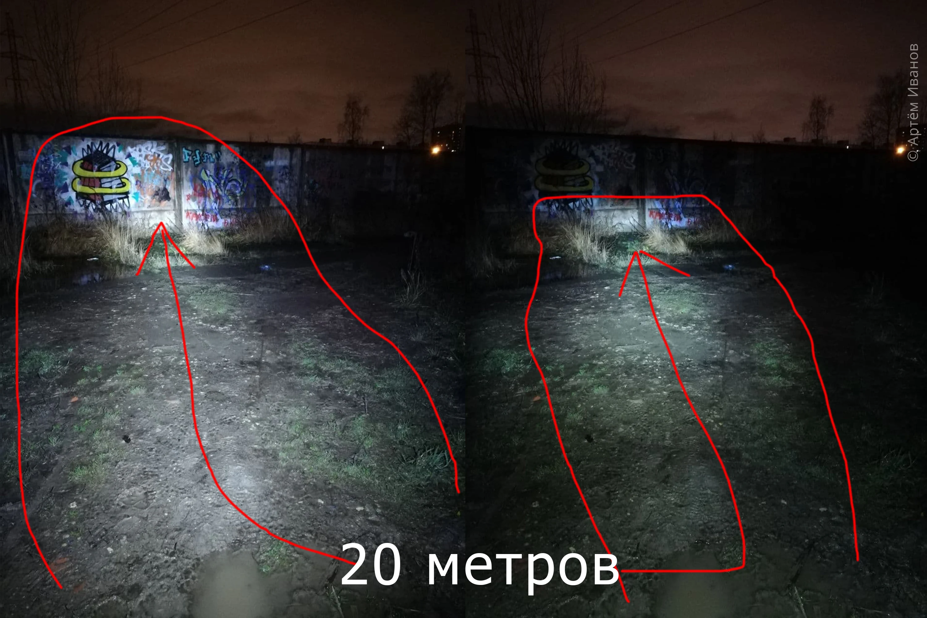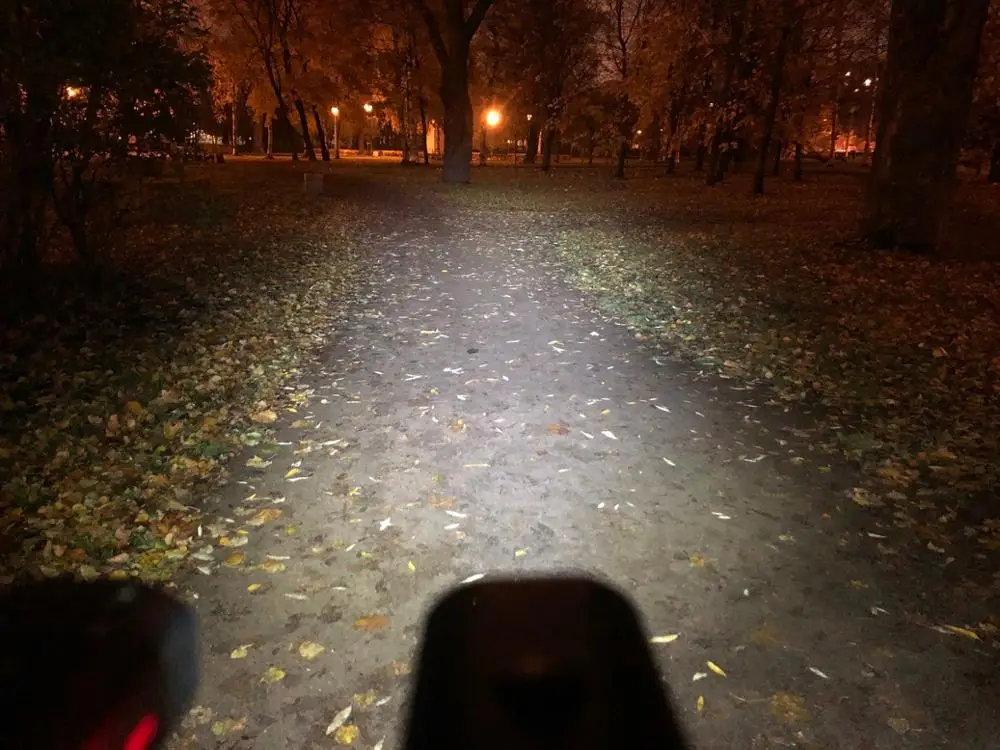 Короч, фоток не даёт загрузить больше 5 Фонарь норм. В мокрую погоду 20 метров света есть. Ездить можно. В сухую погоду так вообще. На фото сравнение с другим фонарём где 12 диодов T6 которые святят во все стороны. Весит чуть меньше 200 грамм Срез есть! Пешеходов не слепит. Рекомендую!