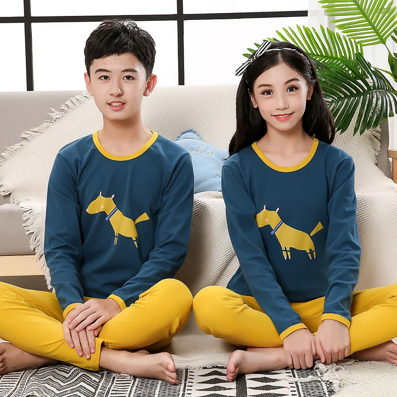 Новинка, Подростковая модель, 100% Хлопковая пижама, комплекты одежды для больших детей, детская одежда для сна для мальчиков, пижамы для девочек, ночное белье