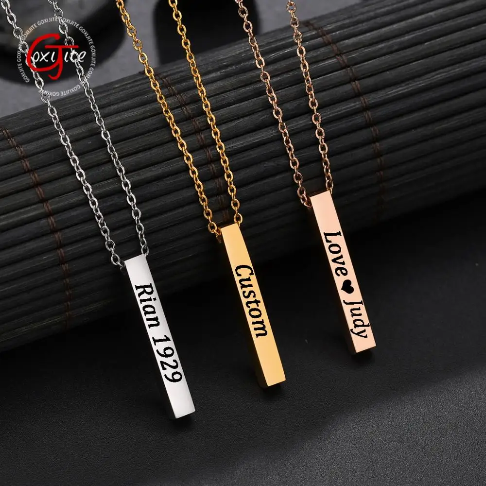Goxijite персонализированное квадратное ожерелье с именем на заказ ожерелье из нержавеющей стали с Четырехсторонней гравировкой ожерелье с кулоном лучший подарок для женщин