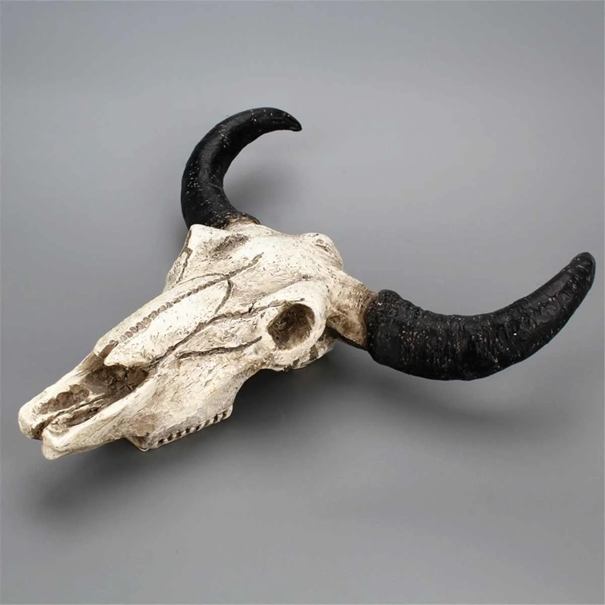 Полимерная голова черепа коровы Longhorn, настенное украшение, 3D скульптура животного, дикой природы, статуэтки, ремесла, рога для домашнего декора