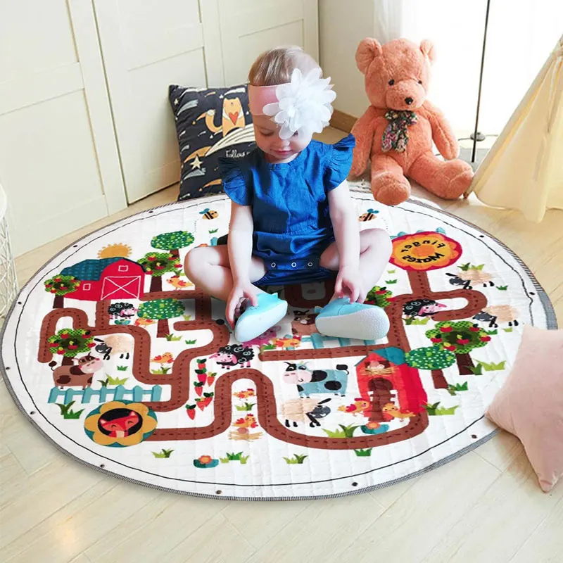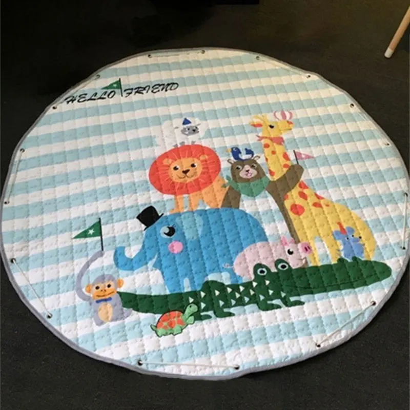 Детский коврик для игр с животными, Круглый хлопковый развивающий коврик для детей, игровой коврик-пазл, сумка для хранения