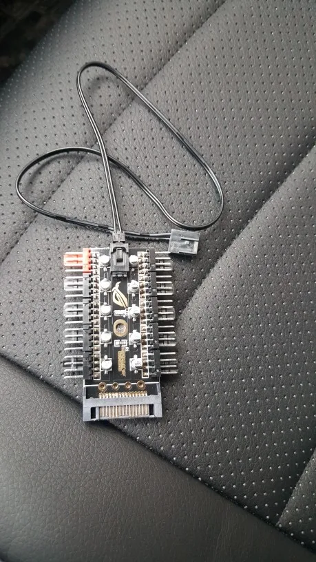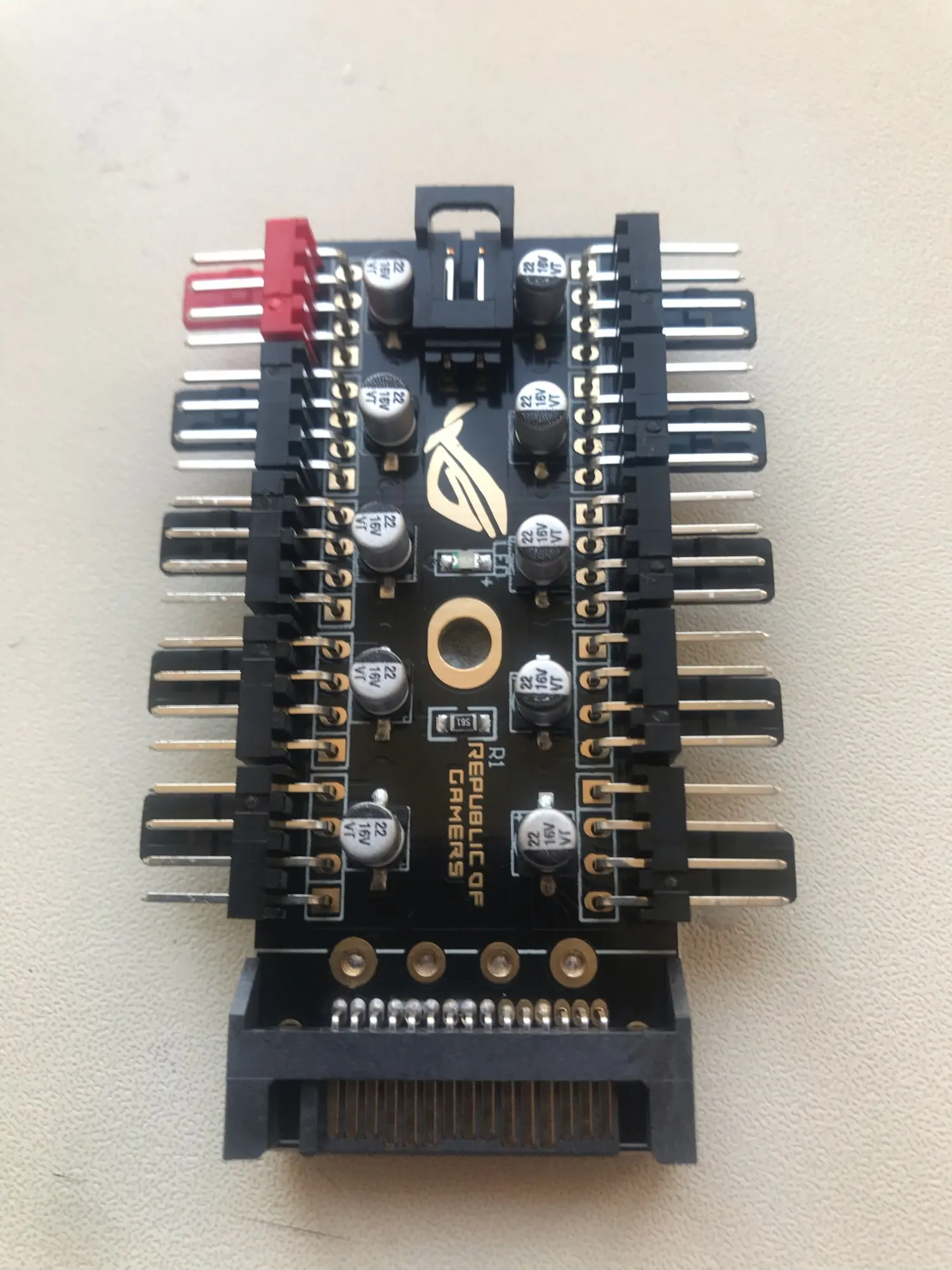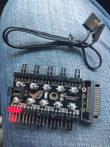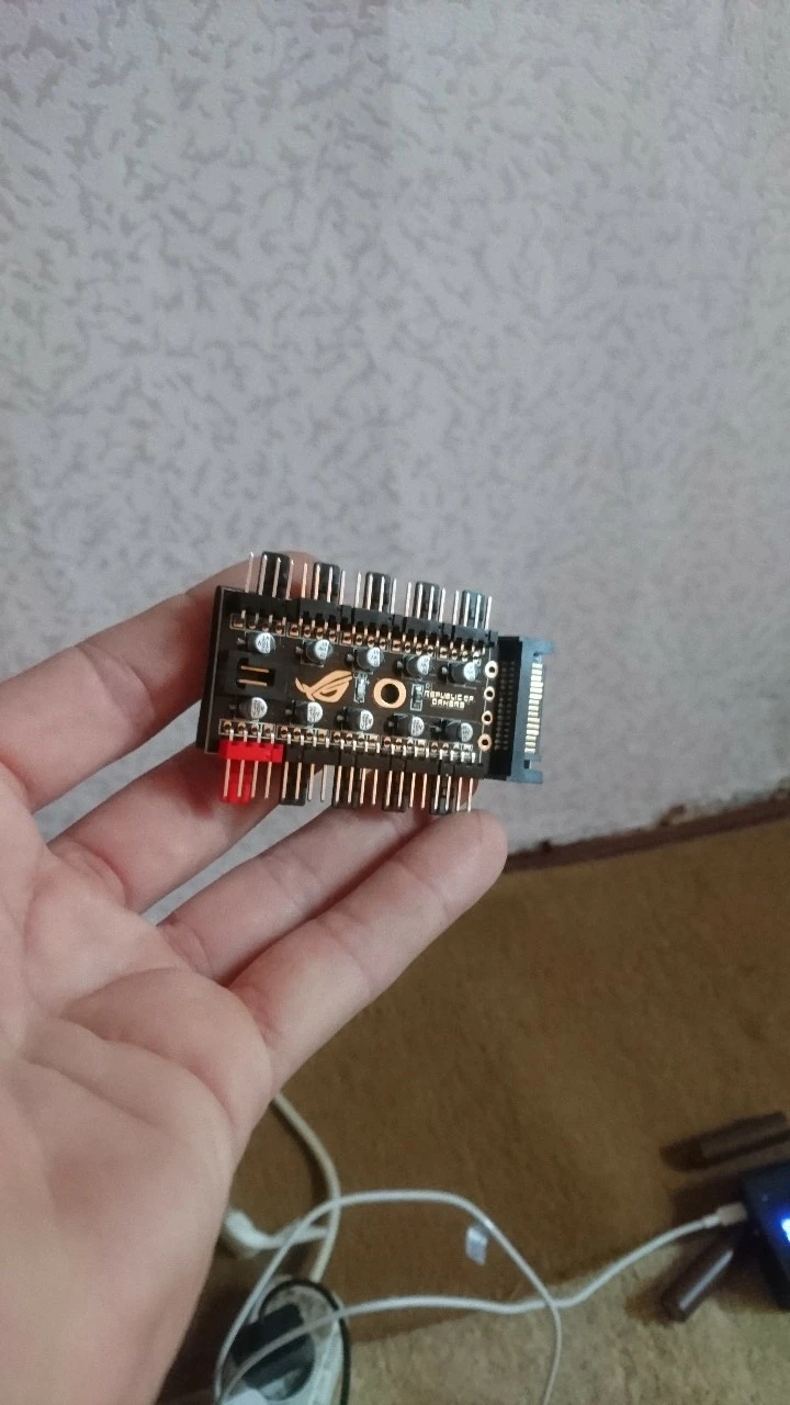 На картинке логотип ASUS более чёткий, чем на тех платах, что пришли(на работу не влияет, на виду размещать их тоже не буду)Липучка уже приклеена к плате, что может быть не для всех удобно, отдирается она плохо и оставляет следы клея, неприятно пахнет. Взял четыре таких устройства - несколько выходов под вентиляторы с кривизной, на одном криво установлен питающий sata разъём и на нём заломлен крепёжный штырёк. Одна из 4 плат проверена посредством BIOS и LinX через комплектный 2-контактный шнур от порта CPU FAN на мат. плате, питание от sata с блока питания, подключалось 3 PWM вентилятора. Тест был пройден, управление есть. Если у скорость не регулируется - обратите внимание, должны быть 4-контактные PWM вентиляторы. Можно сделать управление по напряжению, но надо убрать питание от sata и собрать шнур с двумя фишками как на выходе от вентилятора. По недочётам товару оценку снижать не буду, свою функцию он должен выполнить, продавцу минус в карму за то что кривых положил.