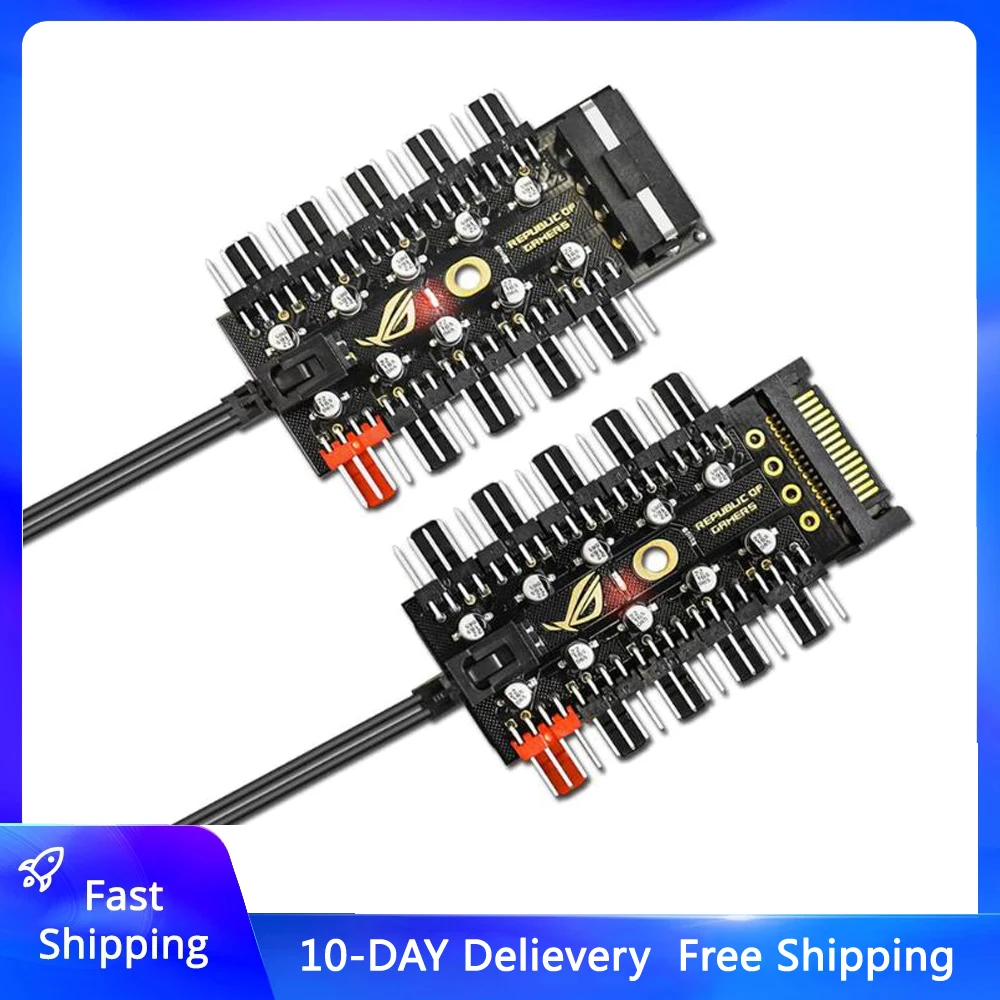 Разветвитель вентилятора PWM, разветвитель, материнская плата с 1 на 10 контактов, вентилятор 4 контакта, 12 В, разъем питания, адаптер контроллера скорости для ПК
