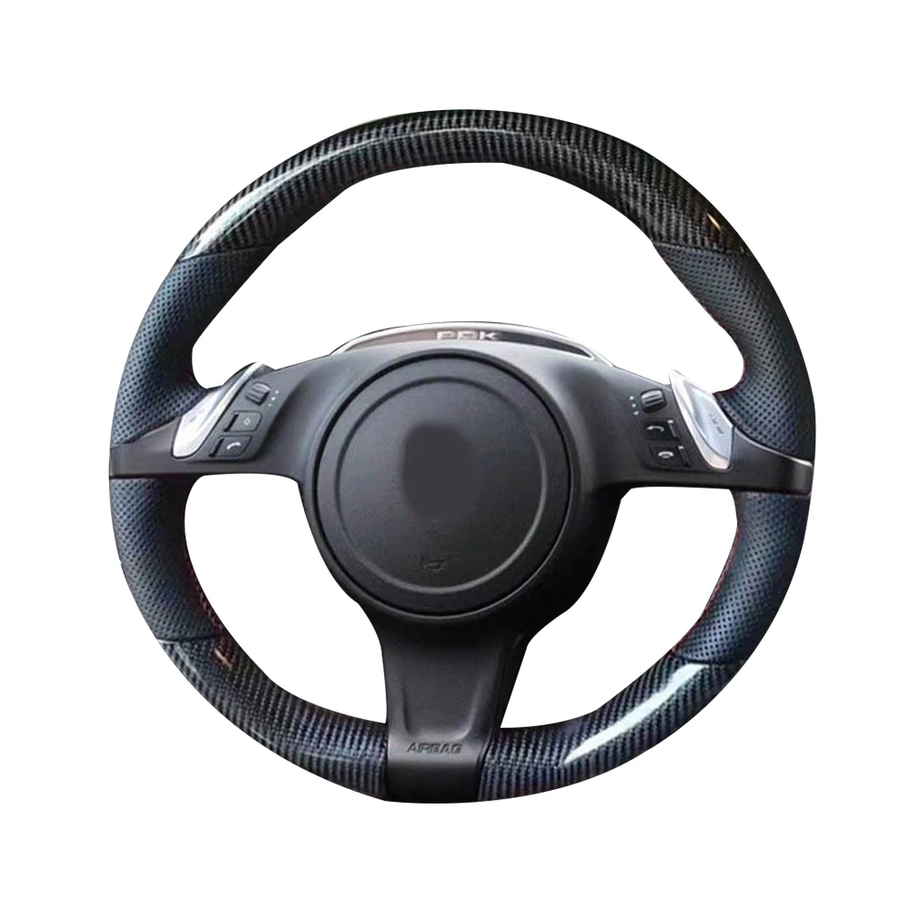 Чехол 5D из углеродного волокна и черной кожи для рулевого колеса, ...