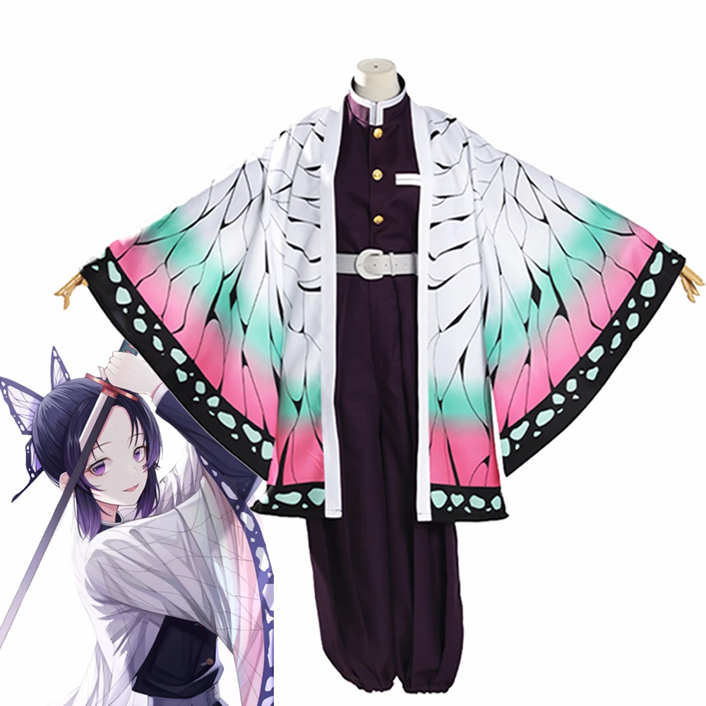 Женское кимоно кочоу шинобу, костюм для косплея истребитель демонов, киметацу но айба, униформа для Хэллоуина, карнавал, полный комплект униформы, парик