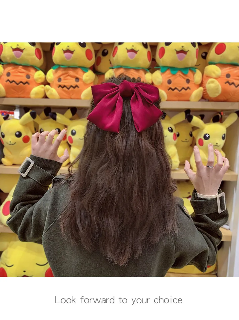 Заколка для волос с большим бантом женская, атласный зажим для воло...