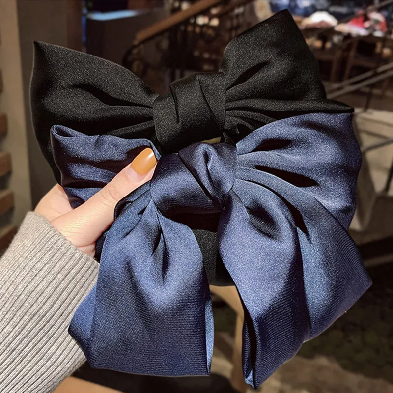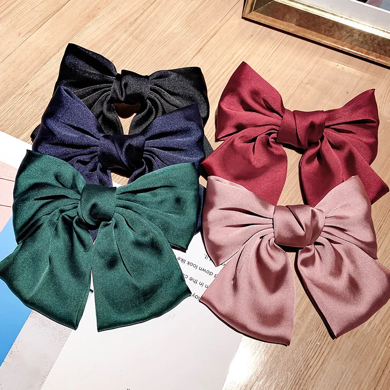 Заколки для волос женские, атласные, с большим бантом, шифоновая заколка для волос ленты, Дамская заколка для волос