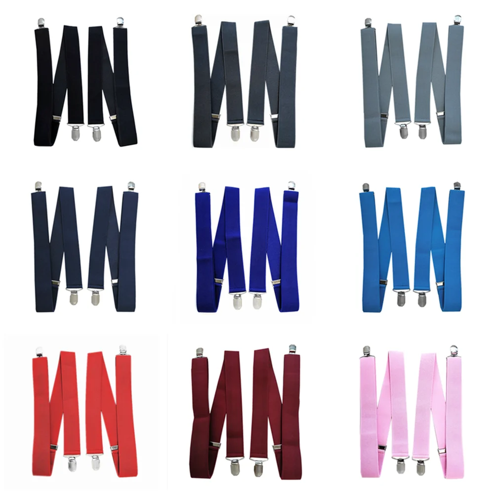 Подтяжки однотонные без перекрестные подтяжки для мужчин и женщин, 4 крепких зажима, Ширина 3,5 см, для свадебвечерние, брюк