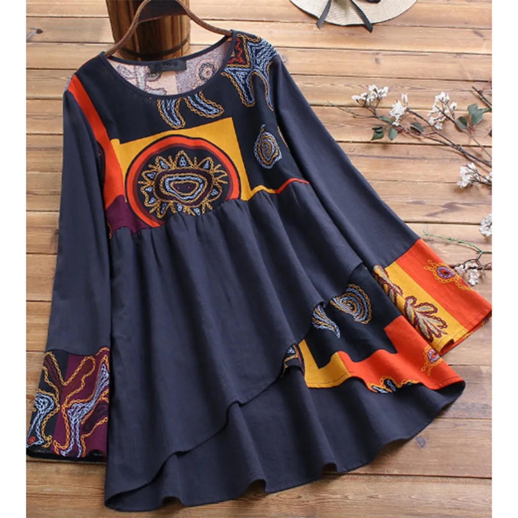 Номер моделиWomen Casual Plus Size Print Splicing Loose Tunic Shirt Blouse