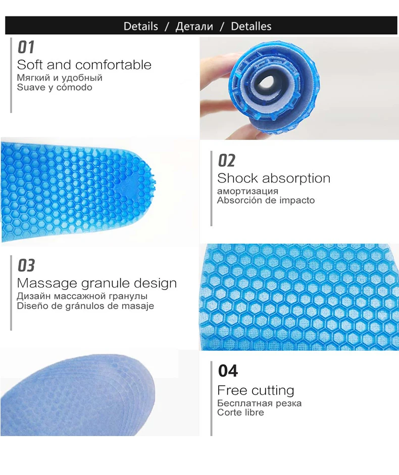 Стельки для спортивной обуви, массажные, ортопедические, стелька из силиконового геля