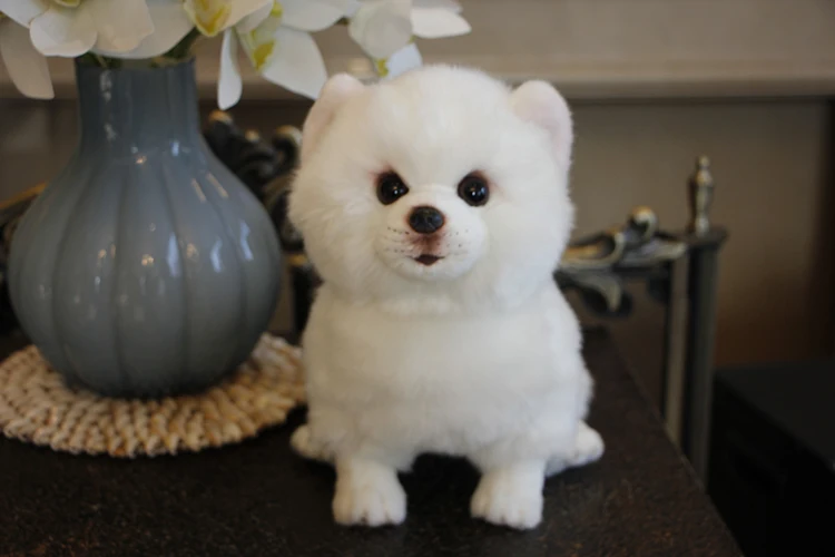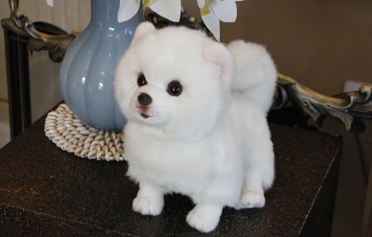 Плюшевая Померанская собака, кукла, имитация собаки, мягкие игрушки для животных, Супер реалистичная игрушка для домашних животных, Роскошный домашний декор, БелоснежкаПрямая поставка