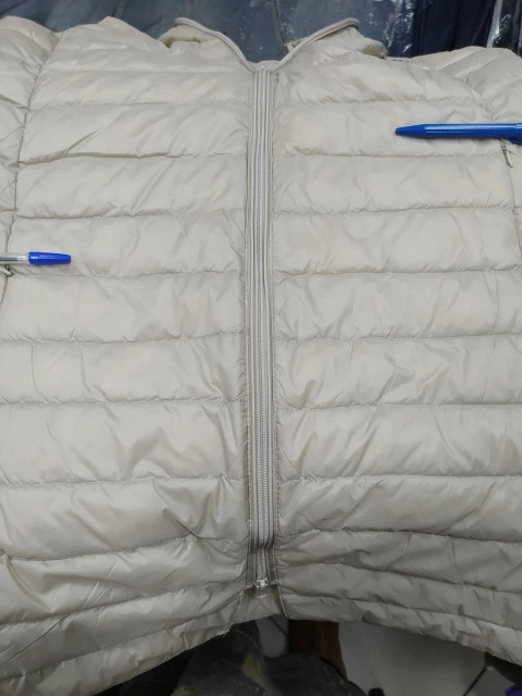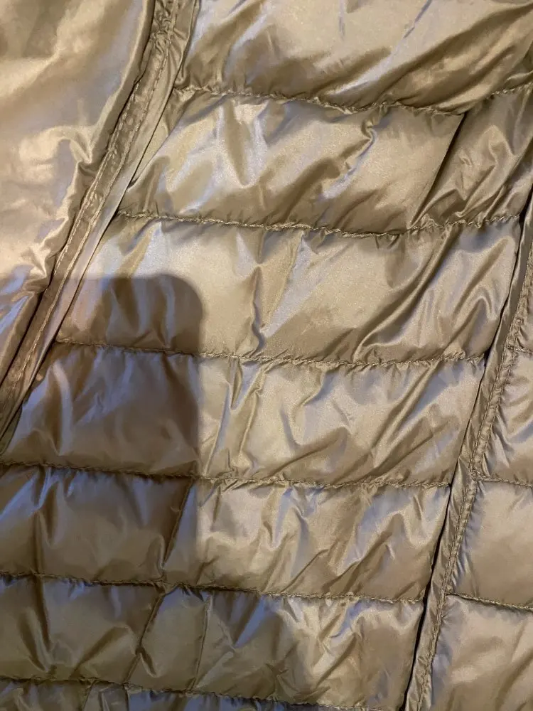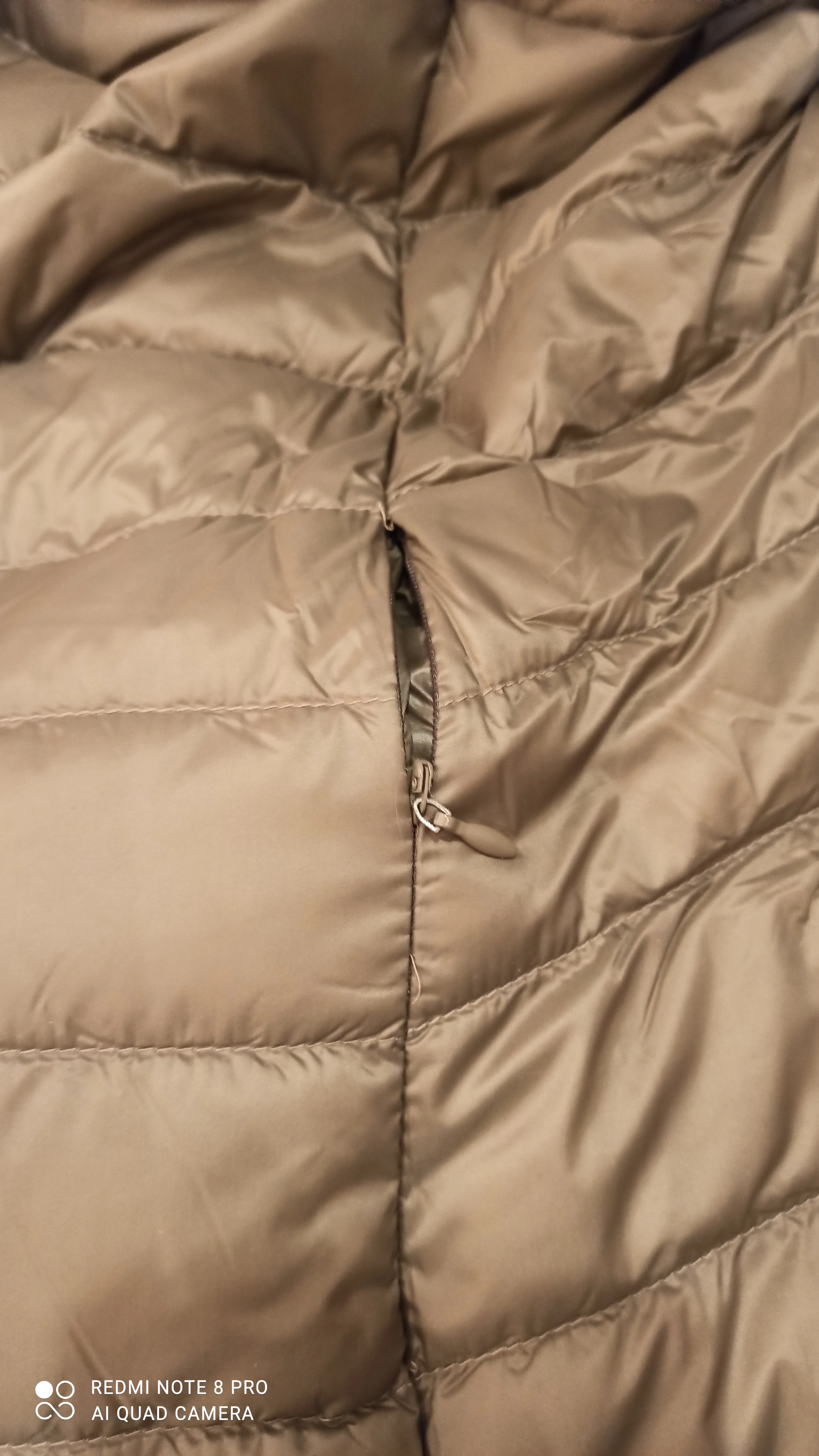 Супер!! Как юникло, даже этикетка почти юниклошная, пуха достаточно - см фото на просвет (это все-таки тонкий пуховик, больше пуха и не надо). Немного торчат нитки, но это не критично. У одного шва нитка была порвана, просто иголкой зашила - не проблема. Ткань очень приятная, мягкая, не как клеенка. Цвет пыльный розовый.