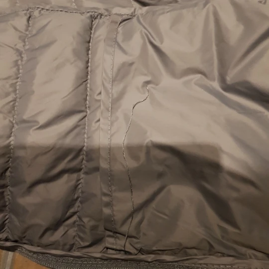 Просто великолепный жилет! Отличное качество, прочность швов, аккуратность исполнения работы, комфортная посадка и длина, двусторонний бегунок на передней молнии и карманы на потайной- их почти не видно в застёгнутом виде-это стройнит фигуру, да и ворам в такой карман транспорте залезть трудно. А если по шву полочки проложить ещё одну незаметную строчку в районе нижней части мешковины кармана, то получится ещё и два внутренних просторных кармана для ценных вещей- документов, сотового телефона и пр. Достаточно тёплый, несмотря на лёгкость и тонкость, не продувает( проймы близко к рукам). Приятный материал, типа болоньи, не суперблескучий, а нежноматовый. Капюшон на мягкой резиночке точно по голове, не съезжает на глаза. 4 XL в точку сел на мои параметры 120-95-120 с лёгким свободным облеганием, не в обтяжку. Продавец положил маленький подарочек- красную ниточку с рыбкой от сглаза и болезней- спасибо, приятно! Очень рекомендую!!!