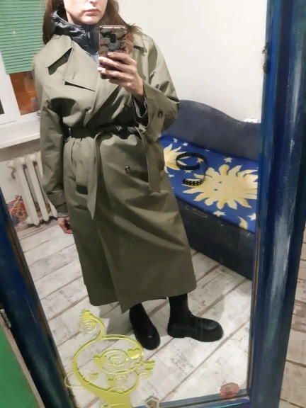 Товар соответствует описанию. Размер подошёл XL на мой 46-48, как раз как и хотела - свободно. Очень тоненькая, невесомая, приятная, не шуршит. По качеству - немного кое где торчат ниточки, но не критично. В целом - довольна. Планирую заказать ещё одну покороче и без капюшона. Продавца рекомендую.