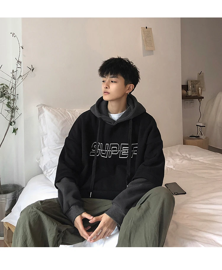 Толстовка мужская оверсайз с капюшоном и надписью в стиле Харадзюку