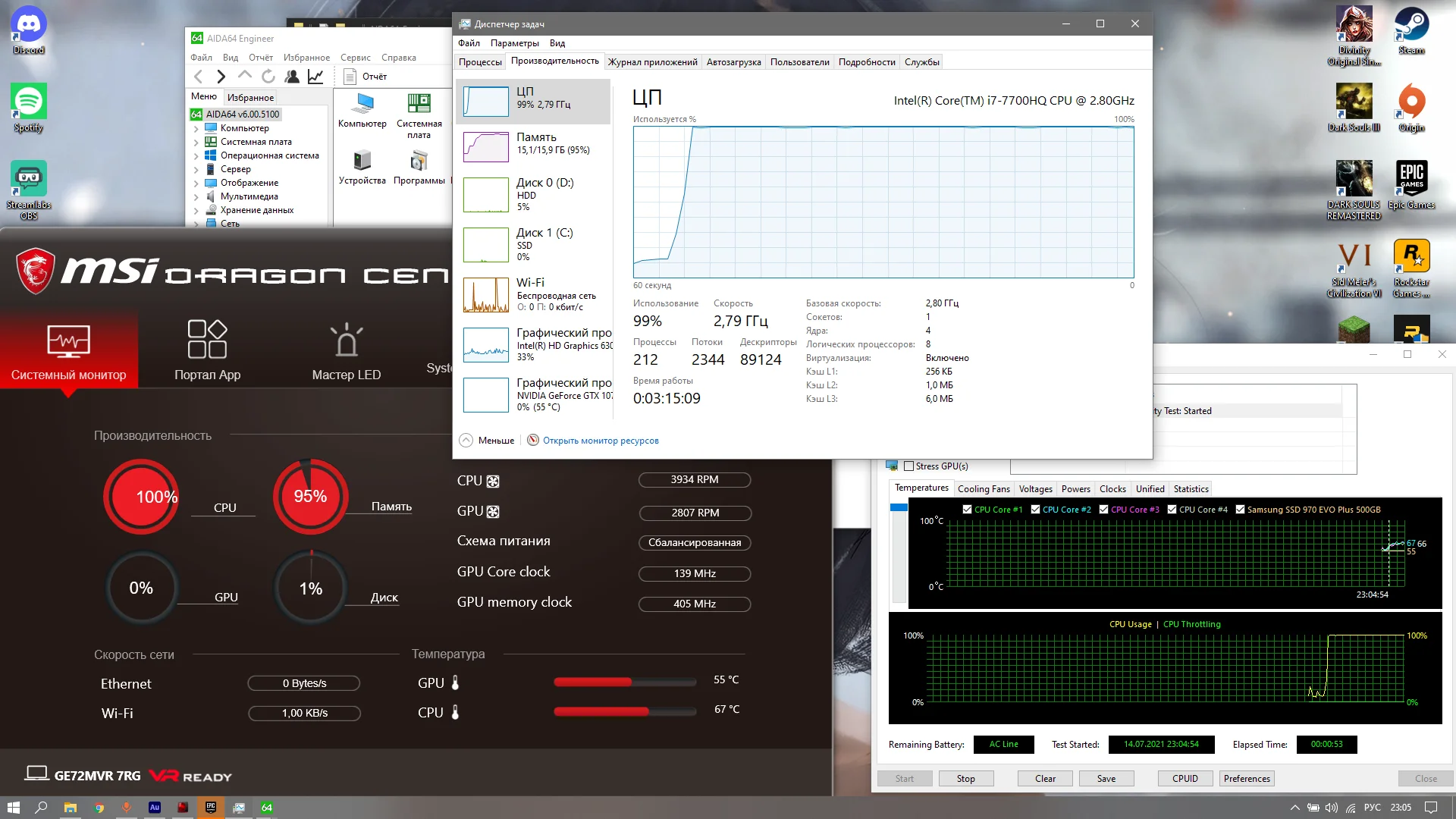 Начну с предыстории, ноутбук MSI ge72 серии, с i7 7700hq и 1070, тестировал уже после замены пасты, 1 скрин обычный прогон аиды, без турбобуста кулер на авто, 2 сбалансированный, кулер авто, цп без ограничений, ARK на ультрах, 3 кулер авто, без турбобуста, 4 кулер в режиме буста, высокая производительность, цп без ограничений, ну и 5 лучший вариант, обороты 6000, без турбобуста. Если рассудить то паста мне отняла как минимум 6 градусов от постоянных 80 на цпу. Во всех случаях использовался девольтинг на -130.9mV и дополнительная подставка с двумя кулерами.