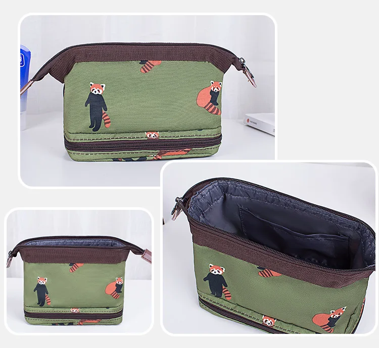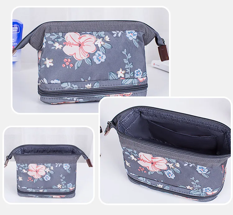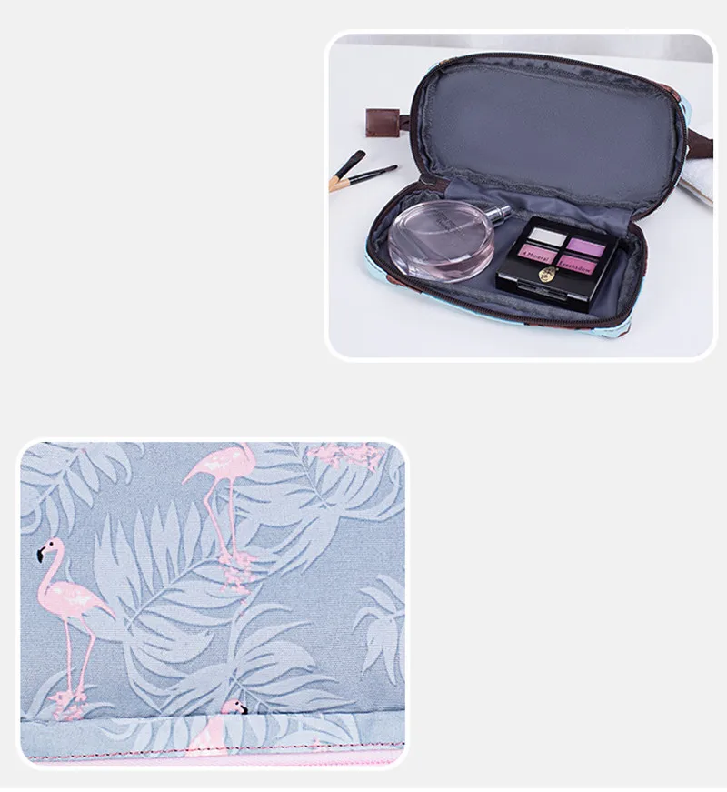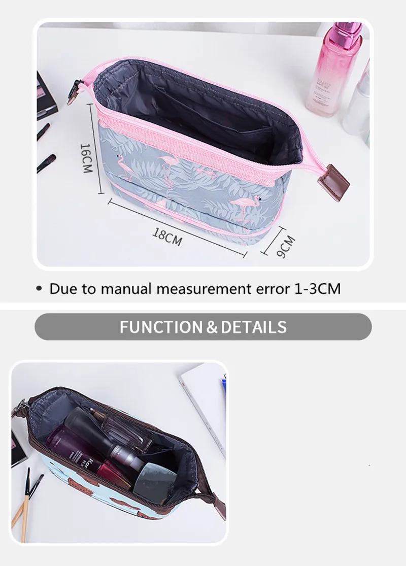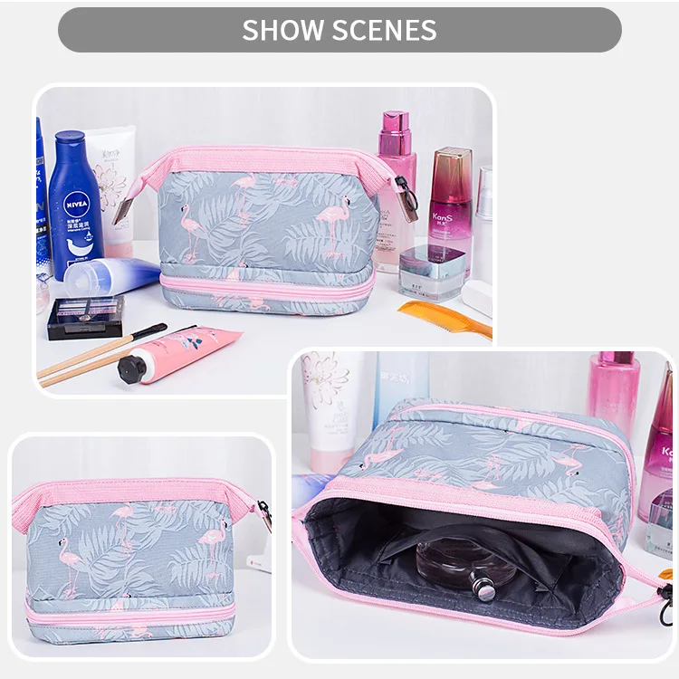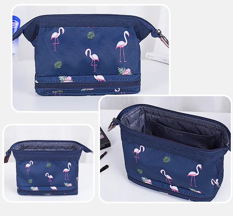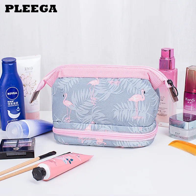 Двухслойная косметичка с фламинго для женщин, дорожная вместительная косметичка для косметики, несессер, функциональная сумочка