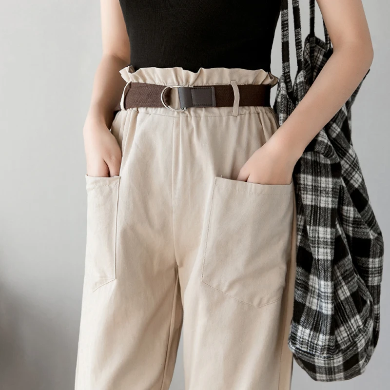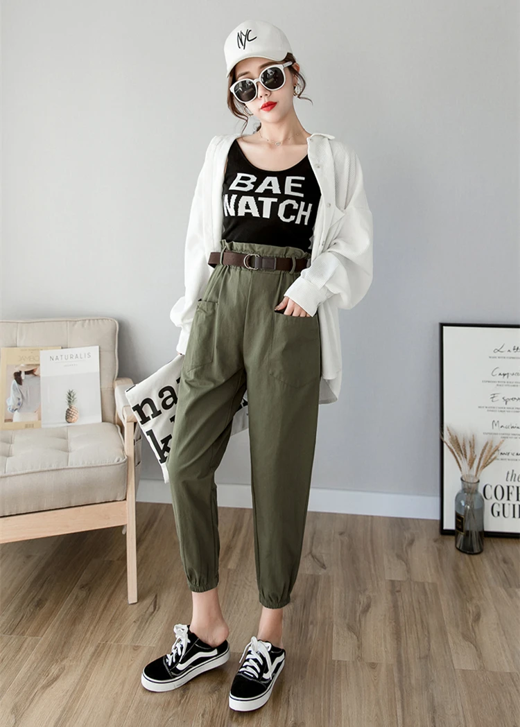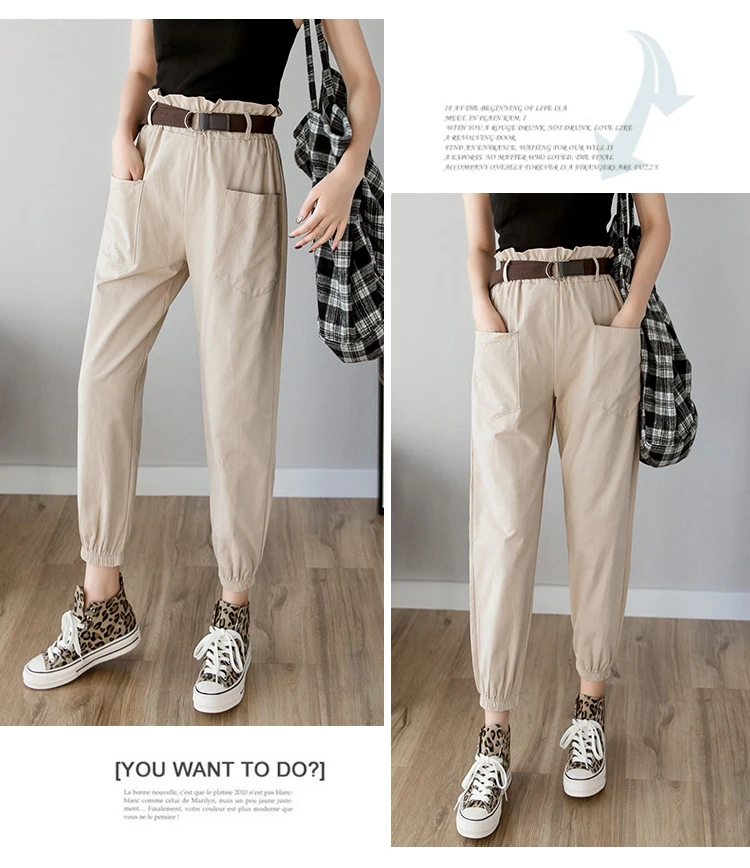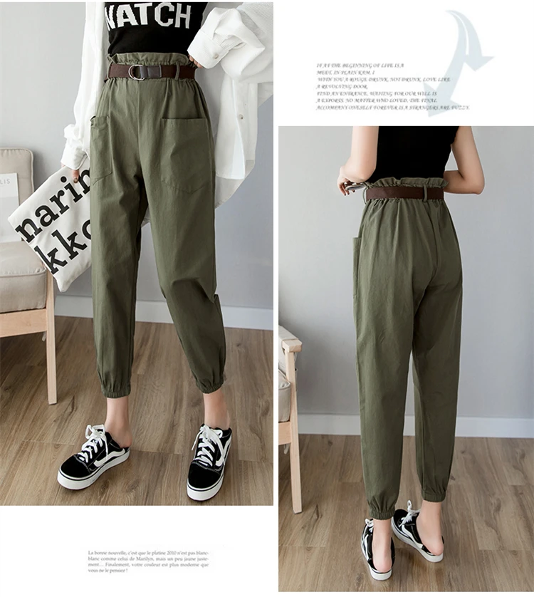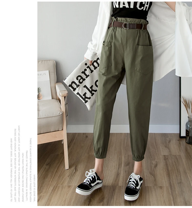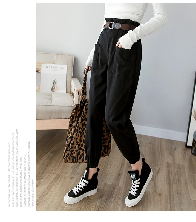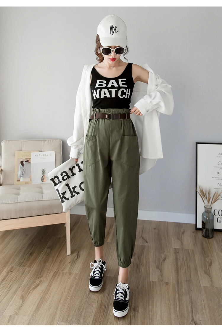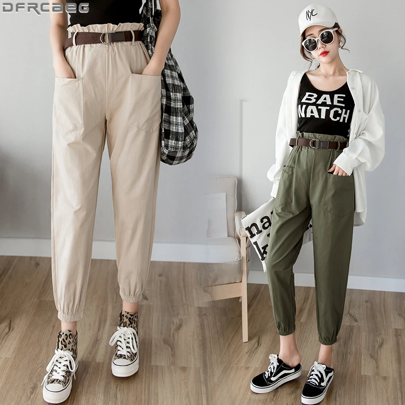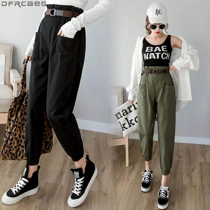 Брюки-карго женские свободного покроя, уличная одежда, брюки-султанки с эластичной завышенной талией и карманами, с поясом, весна-лето 2020
