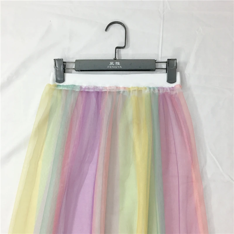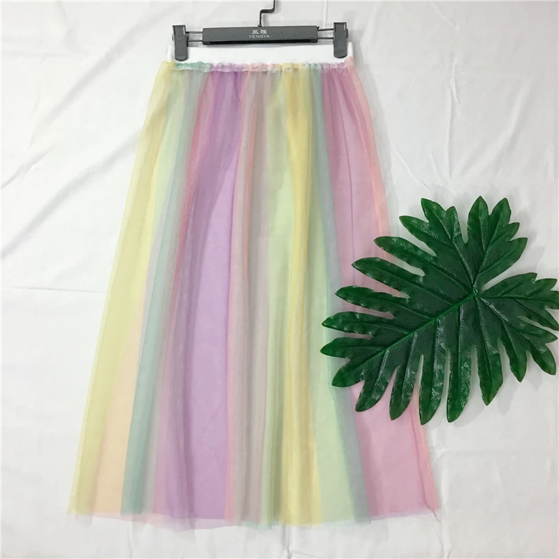 Юбка-пачка Женская разноцветная сетчатая, эластичная с высокой талией, в радужную полоску, прозрачная Тюлевая юбка-пачка средней длины, 2019