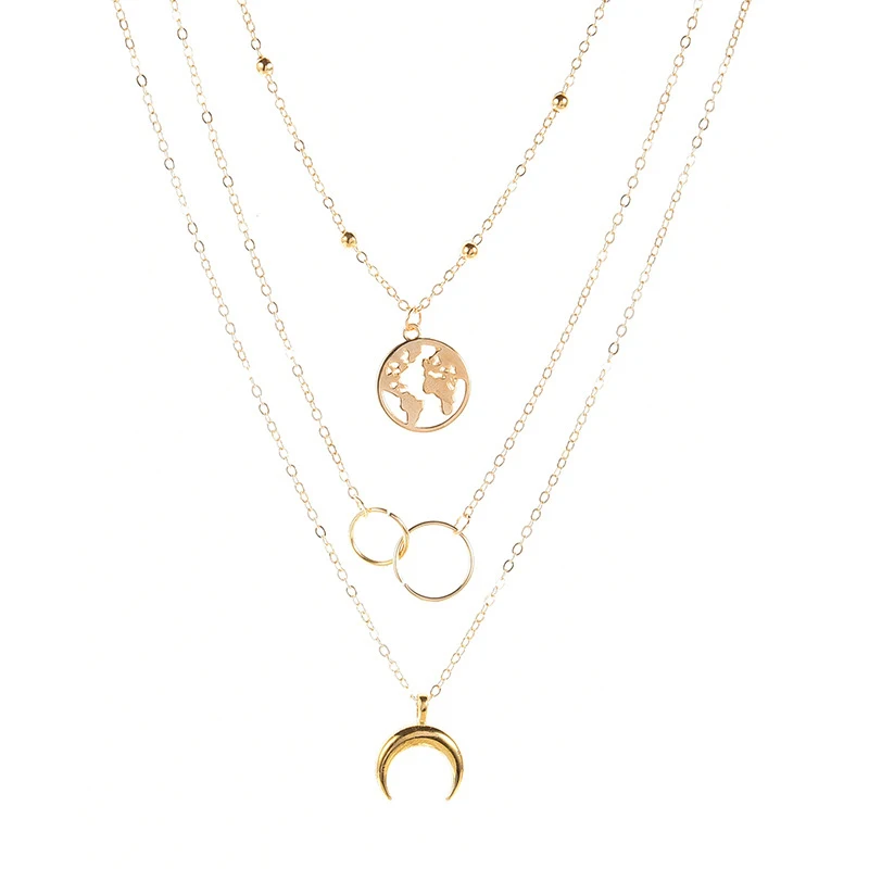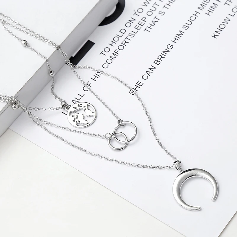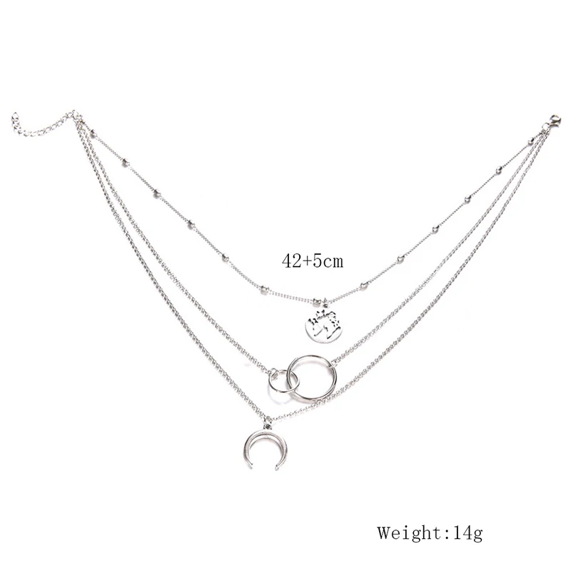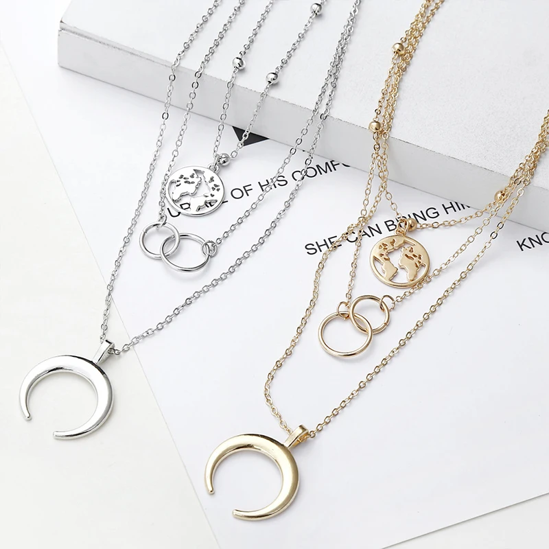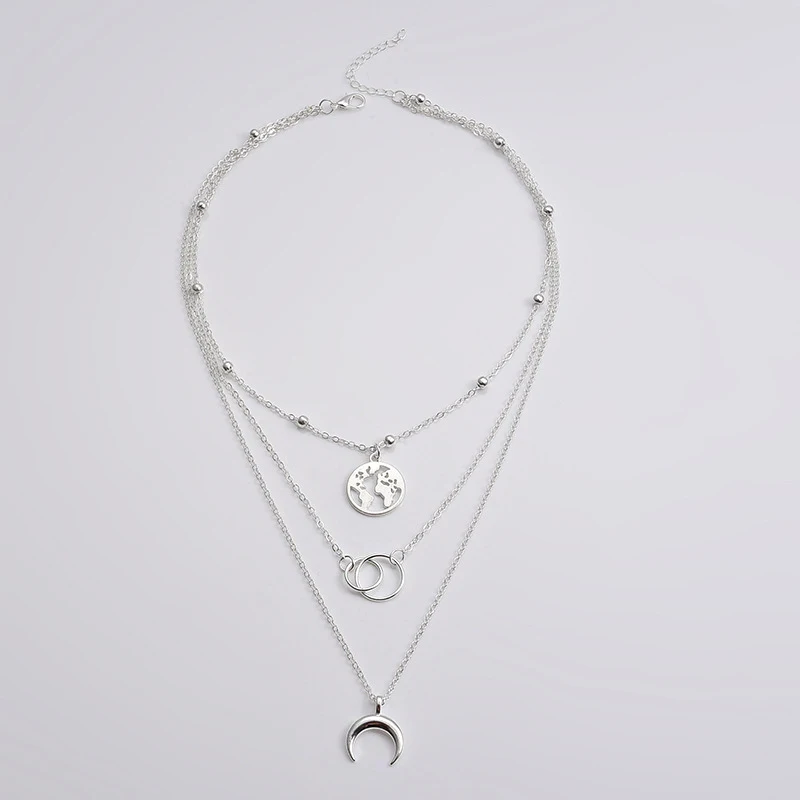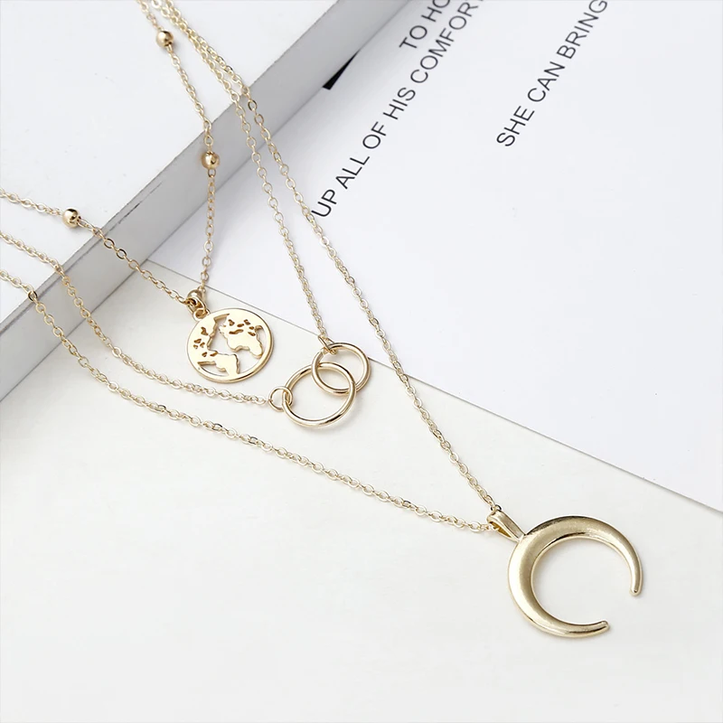 Женское многослойное ожерелье с подвеской в виде Луны, карты, круга