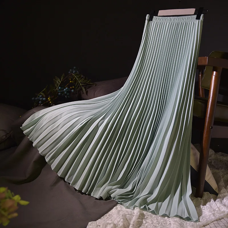 Женская винтажная длинная юбка, плиссированная юбка макси с высокой...