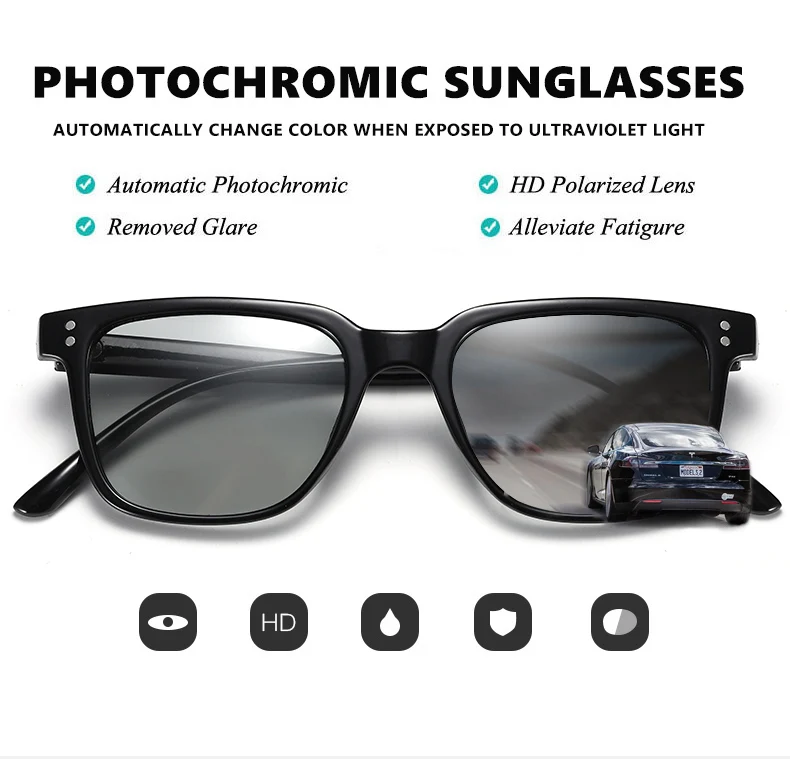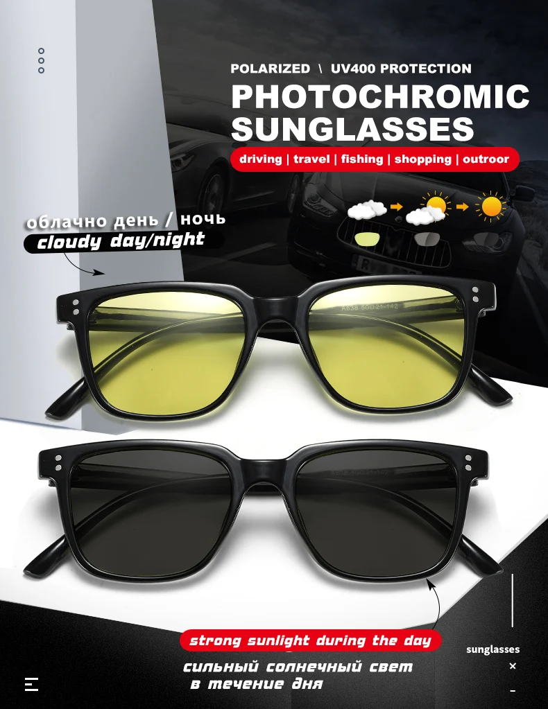 Солнцезащитные очки Мужские, квадратные, фотохромные, поляризационные