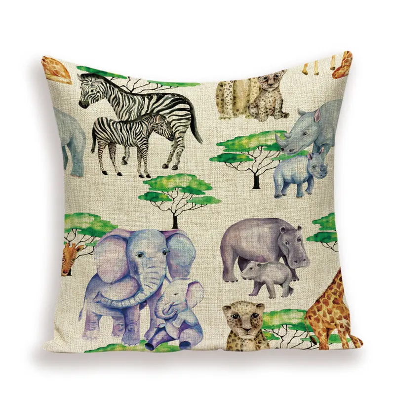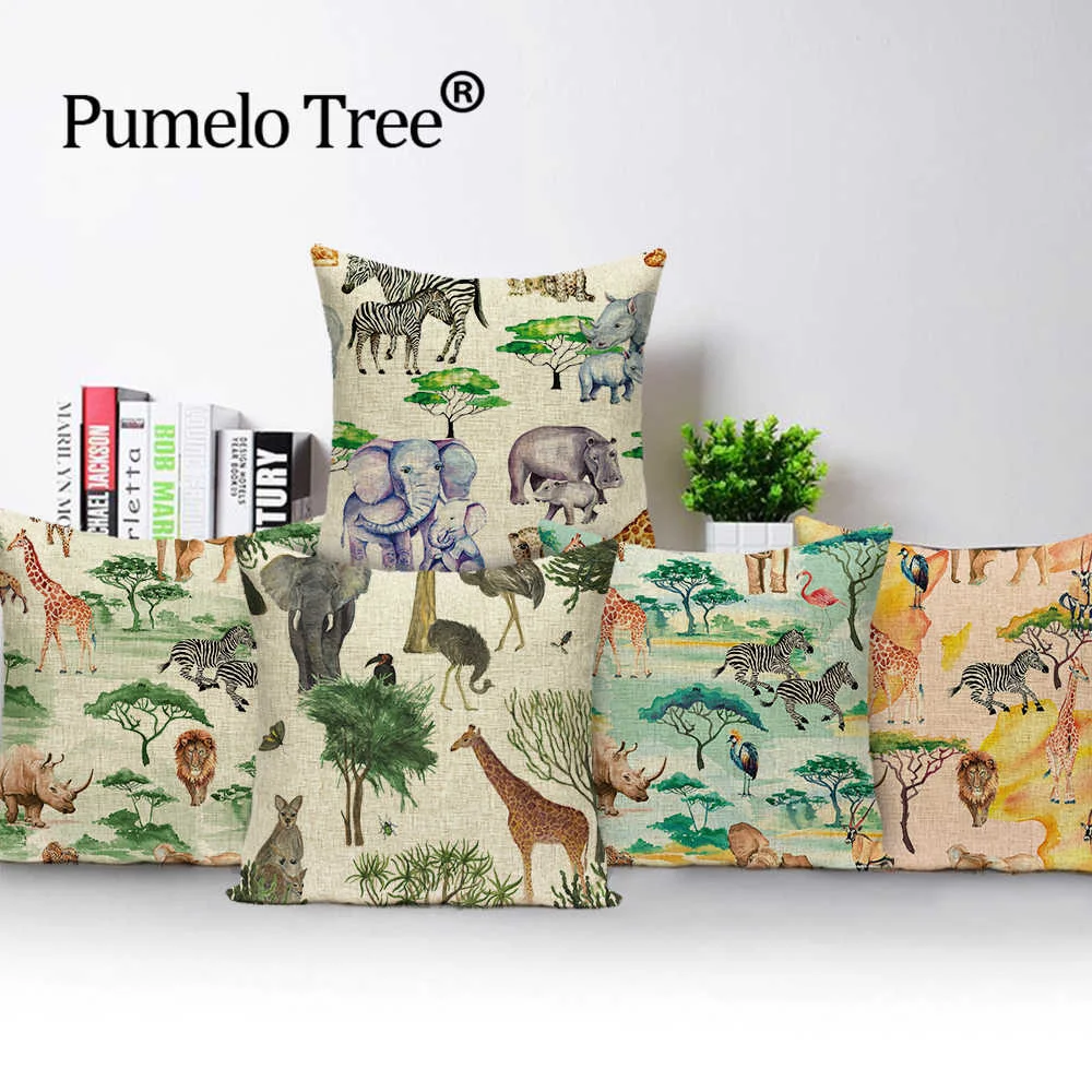 Чехол для подушки с изображением жирафа слона и дерева, декоративные подушки, чехол подушки с принтом, наволочки для животных, чехол для подушки для дивана и автомобиля, чехол s