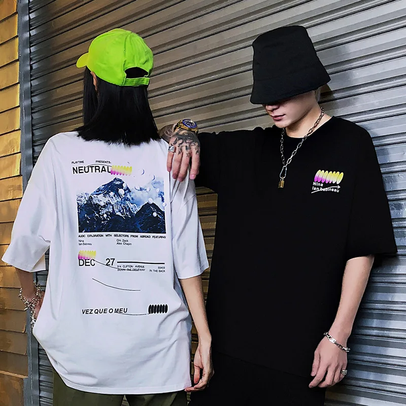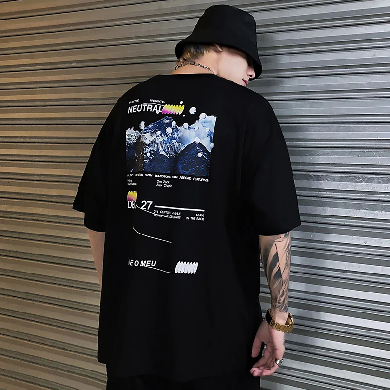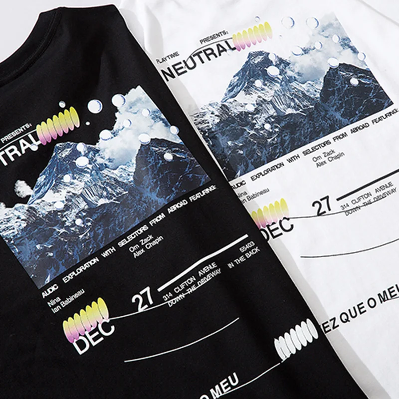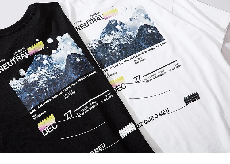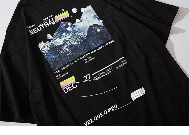 Футболка мужская хлопковая, в стиле хип-хоп, с принтом айсберга, с коротким рукавом, повседневная, модная, черная, в стиле Харадзюку, 2021