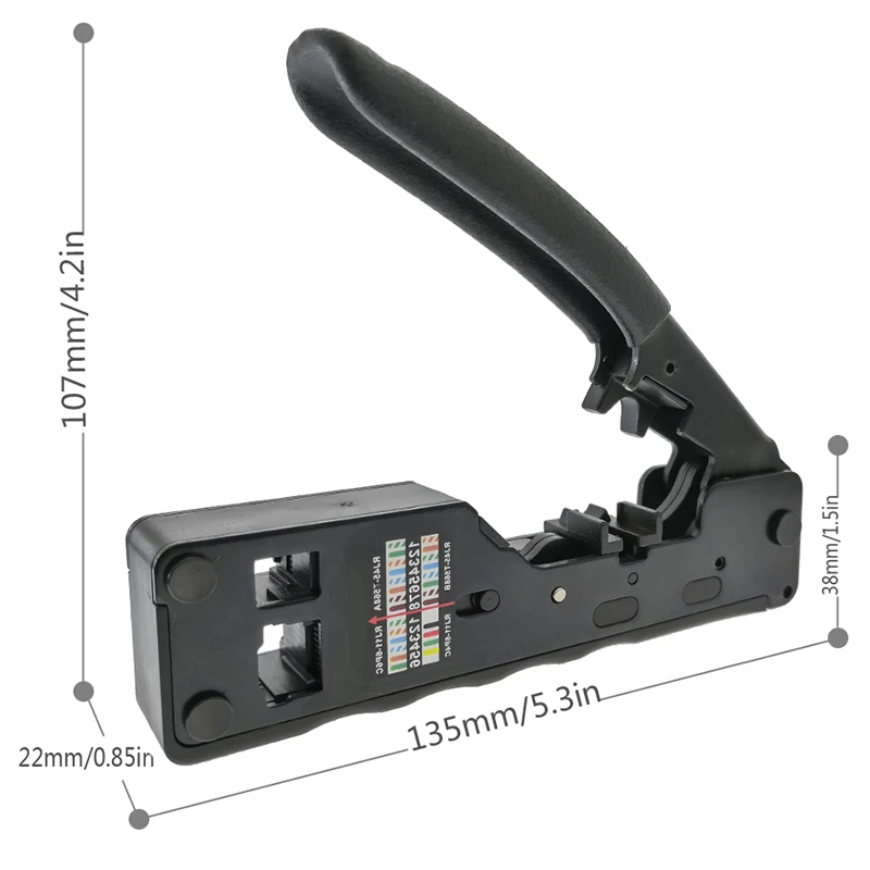 Тип: щипцы для кабеляНомер модели: HY1562Функция: щипцы RJ45Тип 1: плоскогубцы Cat7Тип 2: плоскогубцы Cat6Многофункциональные щипцы компактные, высококачественные и прочные, что делает установку быстрой и легкой.Многофункциональный дизайн отлично подходит для RJ45 8/6pin CAT7/6a металлических зажимов или CAT6/5e и RJ12/13 разъемов.Легко обжимается, нескользящая ручка с канавками для пальцев гарантирует безопасность,Удобное сцепление, а Механизм прямого действия обжима требует только минимальной силы руки.Встроенный замок безопасности, когда вы закончите, замок в виде пистолета плотно закрывает инструмент.Инструмент можно безопасно защитить и хранить более удобно, когда он не используется.Особенности зачистки черного кабеля:Внешняя куртка с полосками кабеля UTP и STP.Полоски коаксиального кабеля.Плоский телефонный кабель с полосками.Функция кабельного резака.Цвет: черныйМатериал: стальПосылка:1 * черный комбинированный обжимной инструмент1 * Черный кабель для зачистки1 * коробкаТолько вышеуказанная посылка, другие товары не включены.Примечание: светильник и различные дисплеи могут привести к тому, что цвет товара на картинке немного отличается от реального. Допускается погрешность в измерениях +/- 1-3 см.