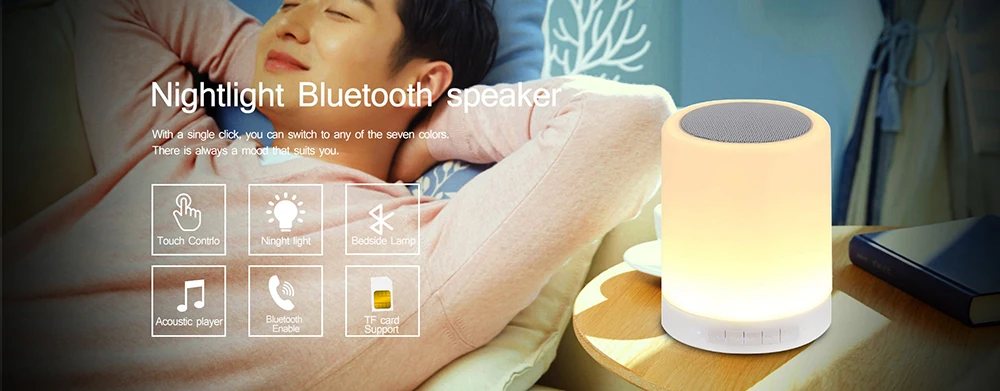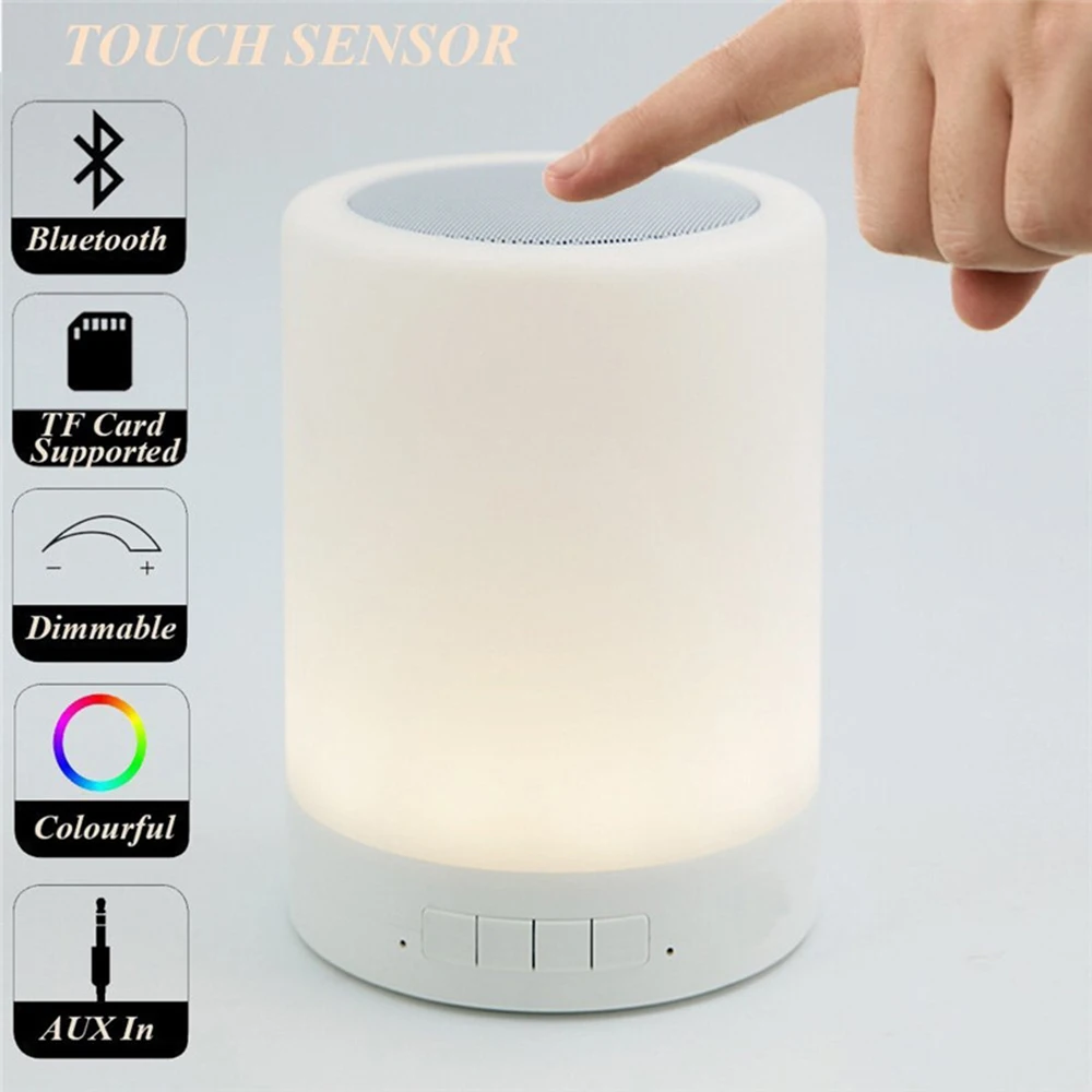 Цветной ночсветильник с беспроводной Bluetooth-колонкой, умное портативное сенсорное управление, светодиодная настольная лампа, поддержка TF-карты, AUX