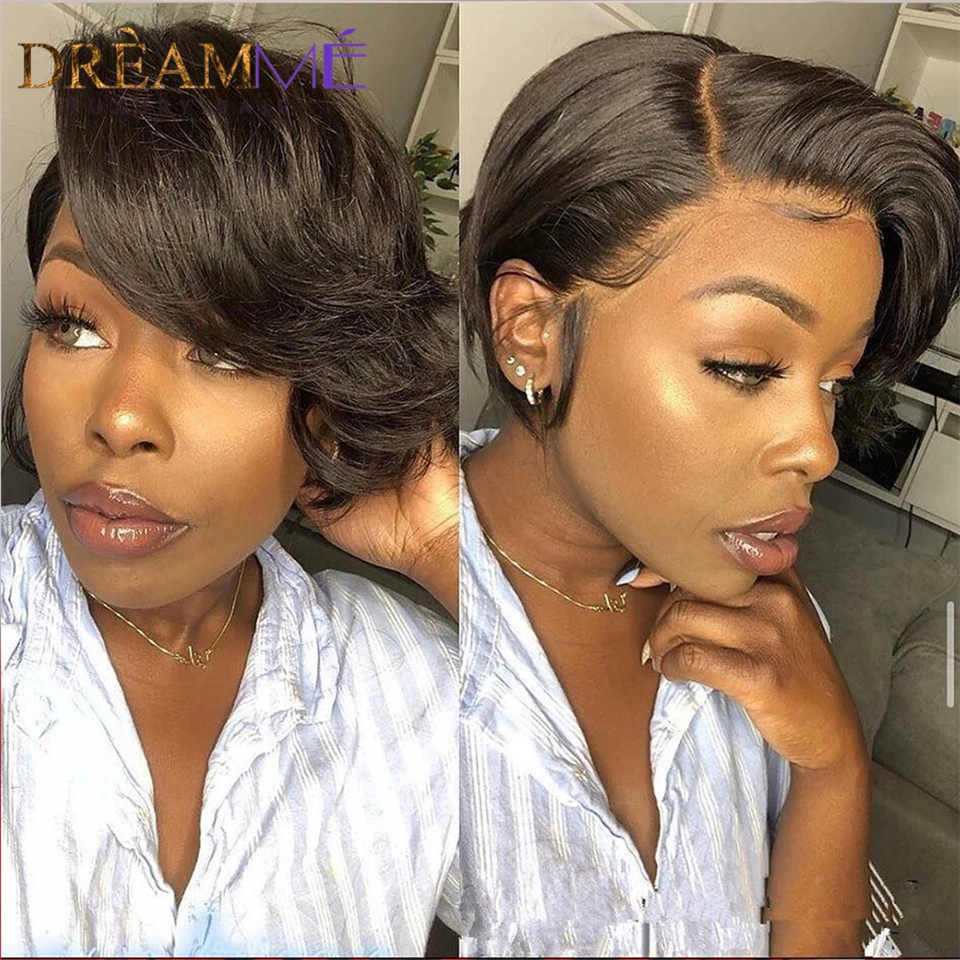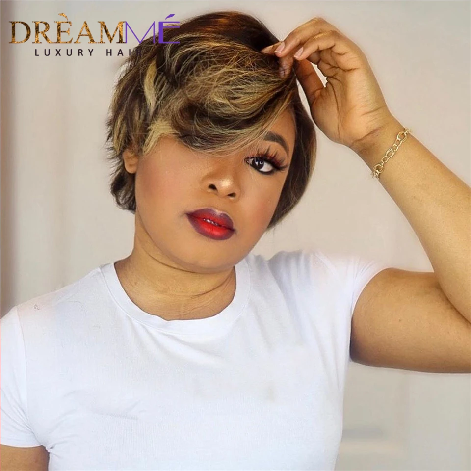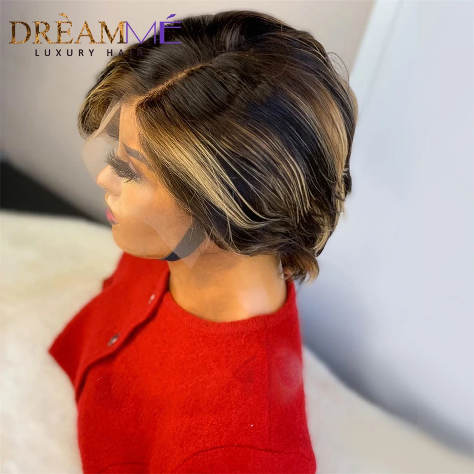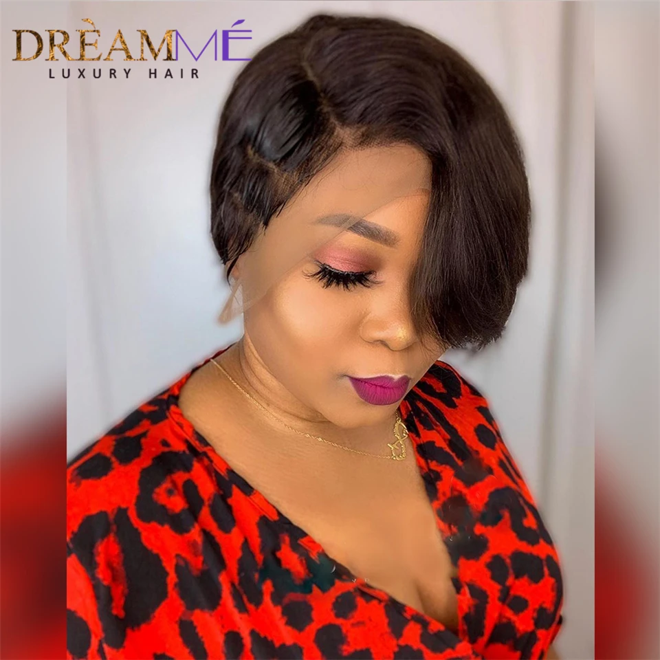 Светлый парик с вырезом Пикси 13x4, короткий парик из человеческих волос на шнурке с челкой, плотность 150%, прямой парик Remy с закрытием