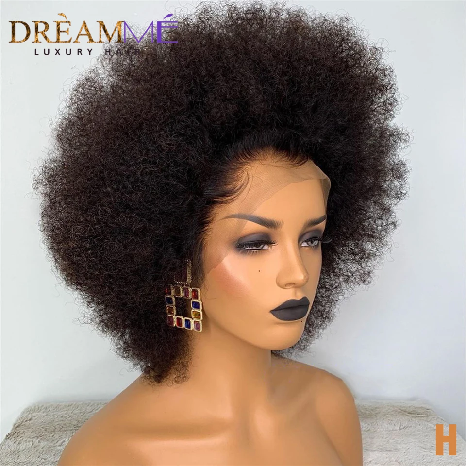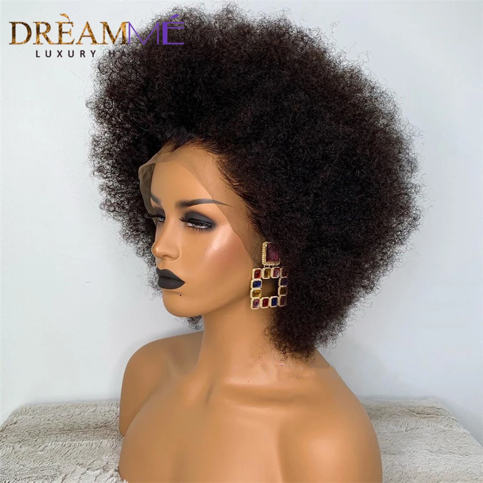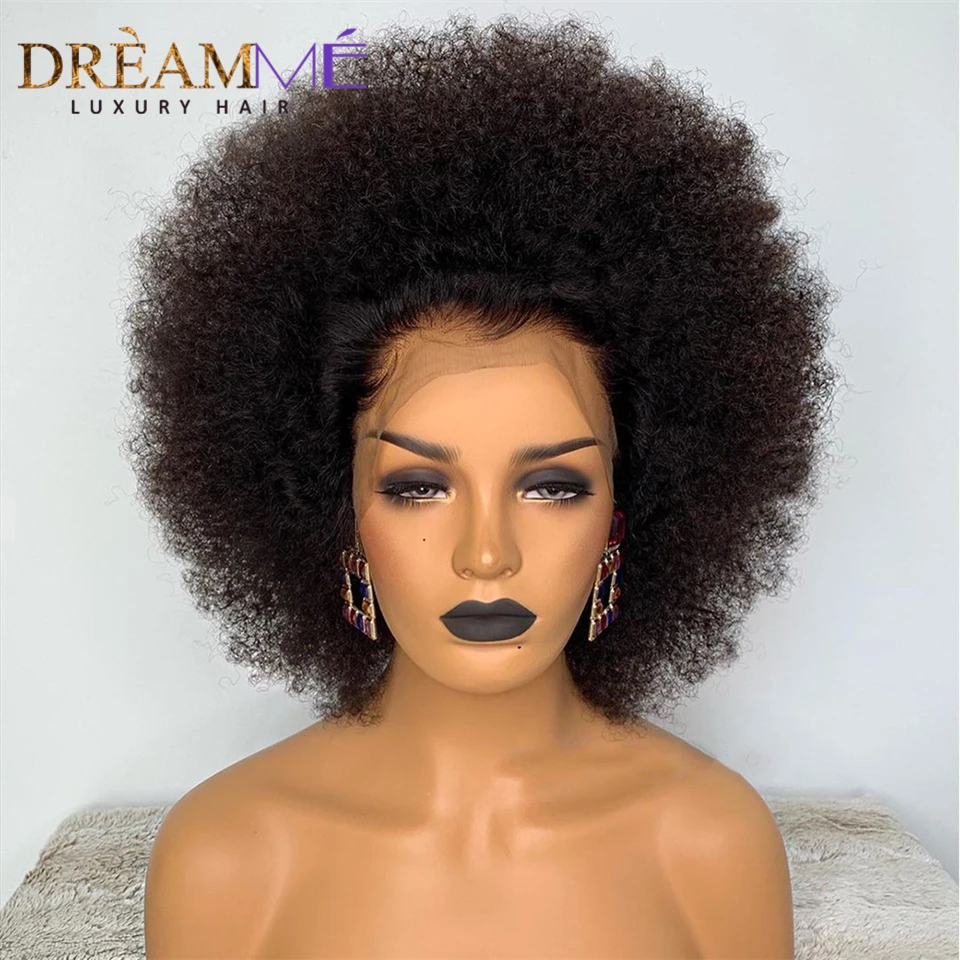 Короткие монгольские афро кудрявые парики, предварительно выщипанные 13X2 человеческие волосы, парики для женщин, черные, Remy, парик на шнуровке, плотность 180%