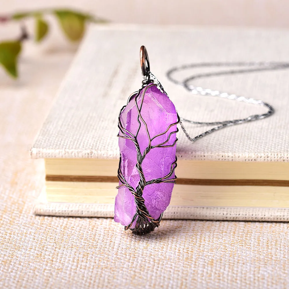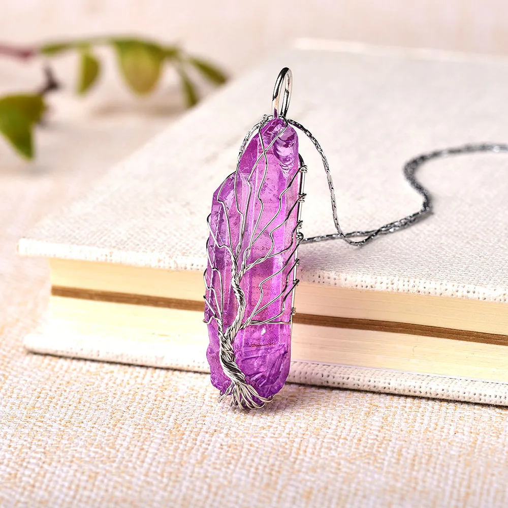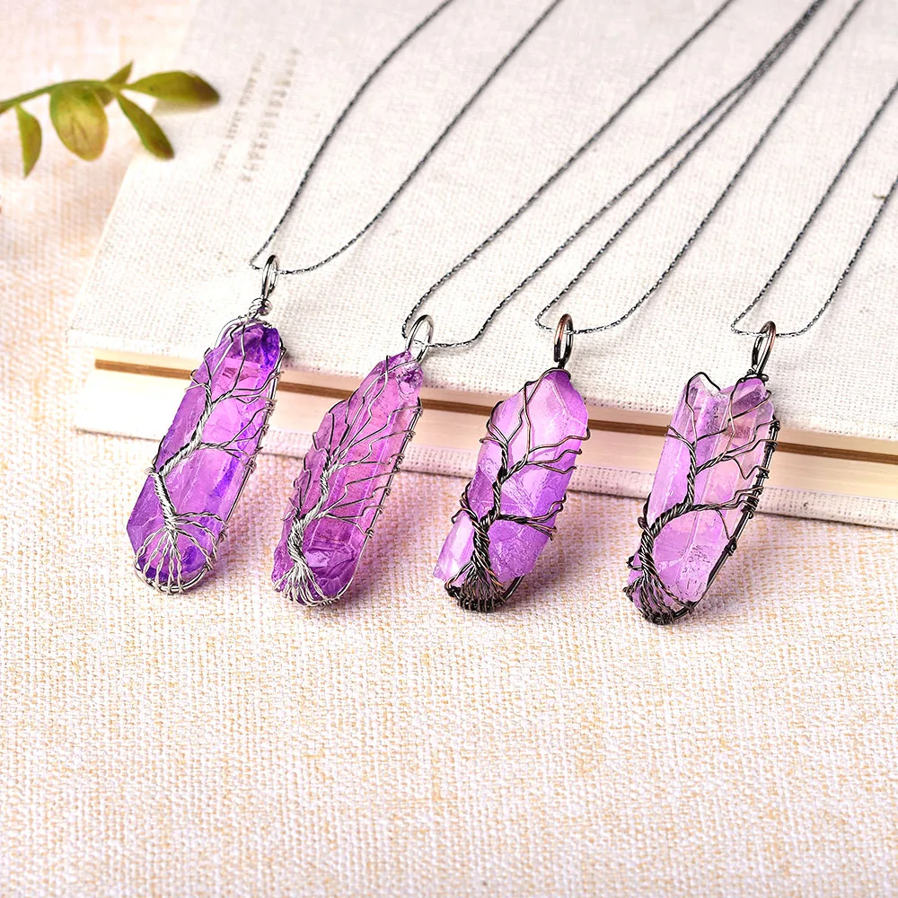 Кулон с натуральным аметистом для мужчин и женщин, ожерелье с подвеской в виде лечебного камня рейки, 1 шт.
