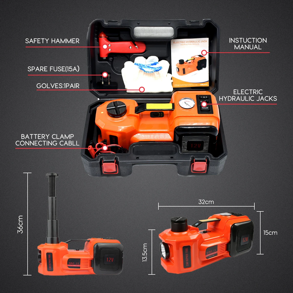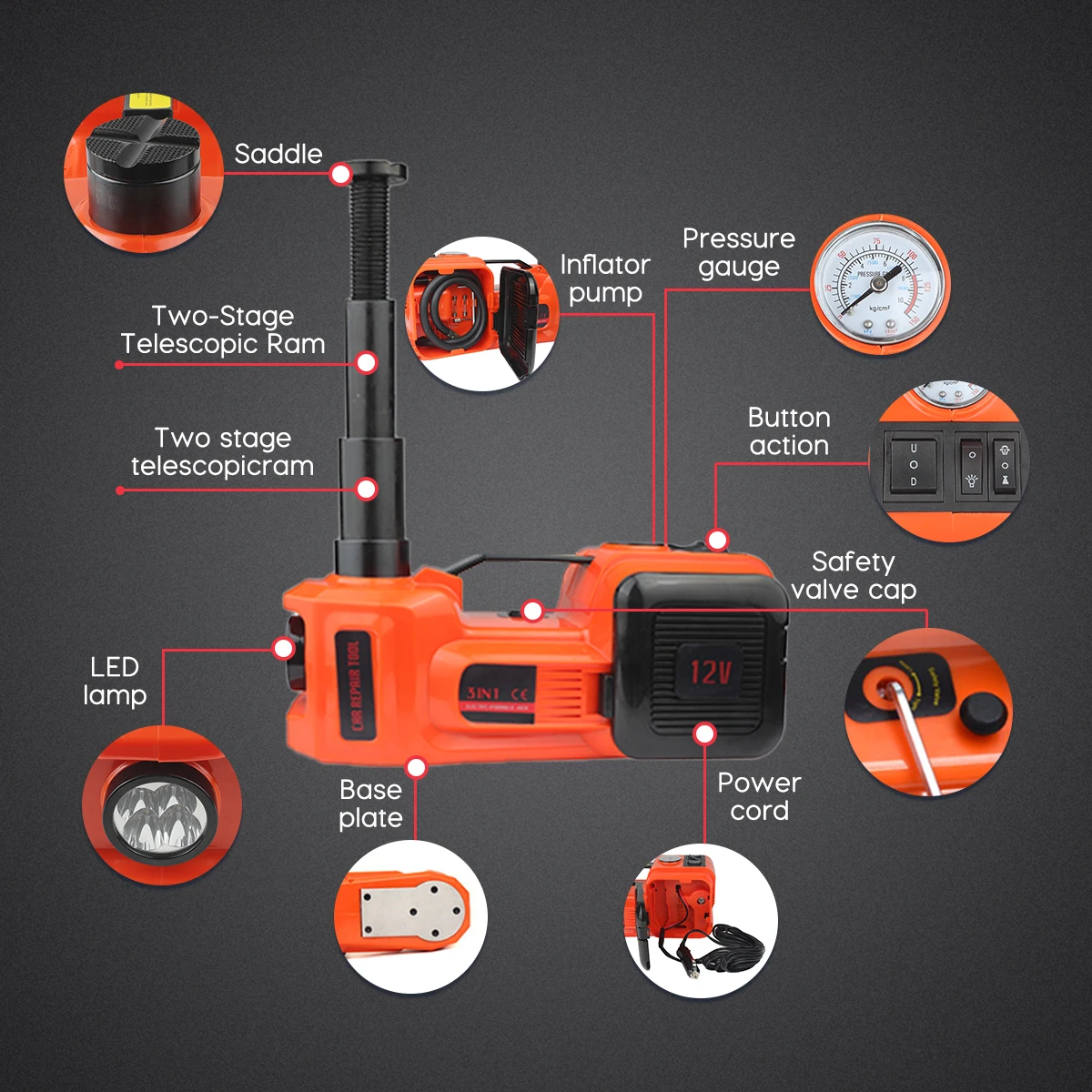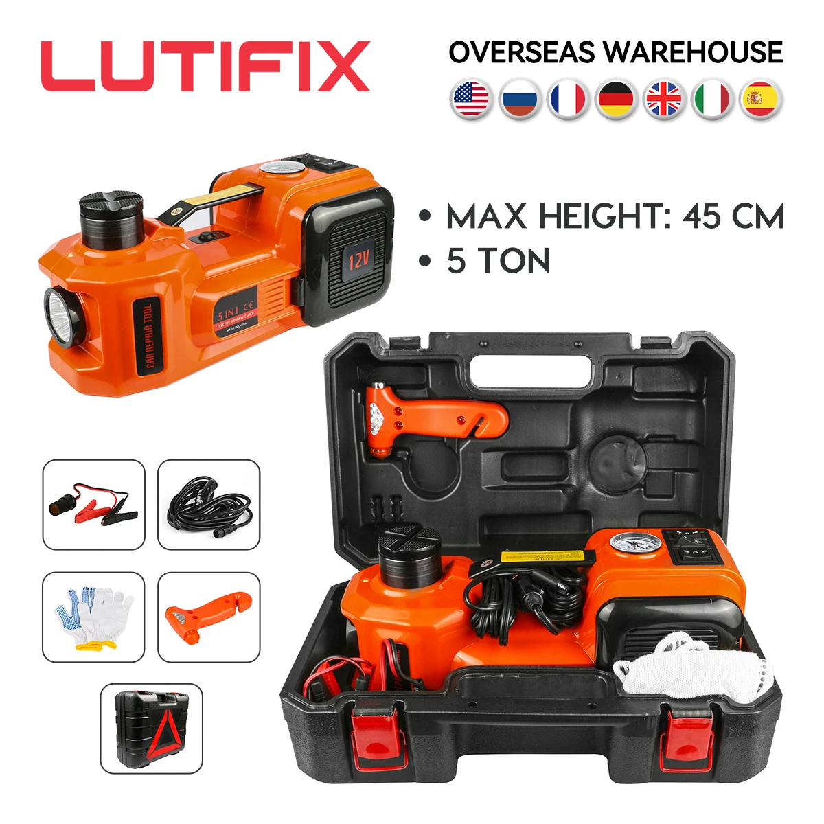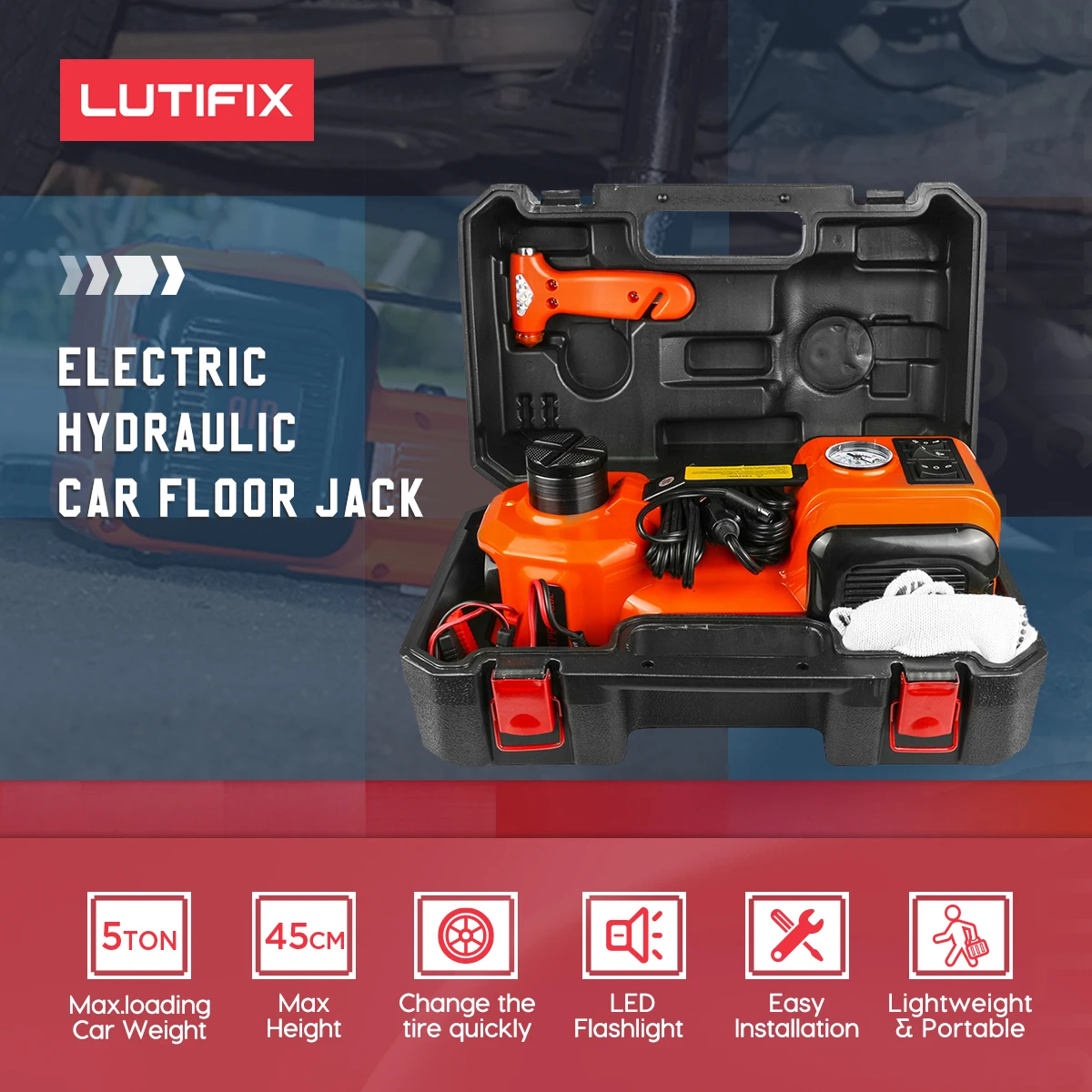 домкрат автомобильный 12 В 5 т 4 в 1 домкрат подкатной Электрический гидравлический домкрат для пола насос для накачки шин светодиодный фонарик безопасный молоток инструмент для ремонта авто