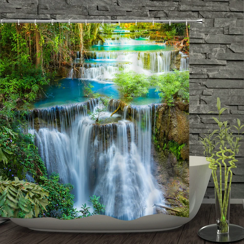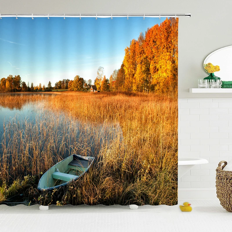 Высококачественная моющаяся душевая занавеска с природным пейзажем,...