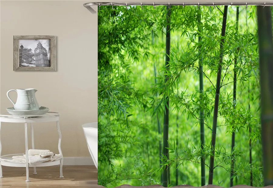 Бамбуковая занавеска для душа с зелеными растениями, занавеска для ...